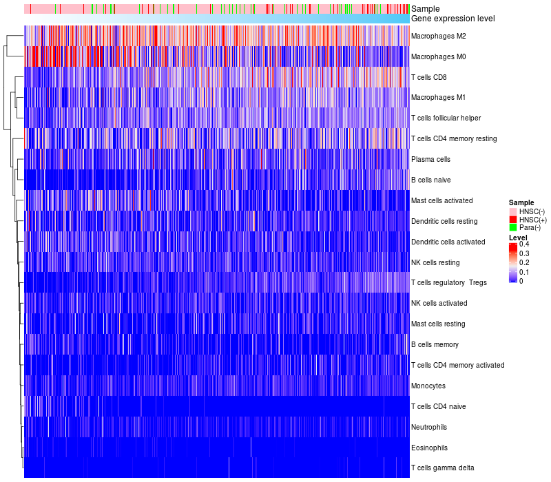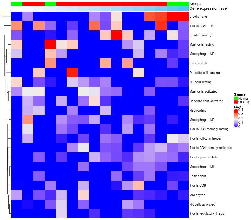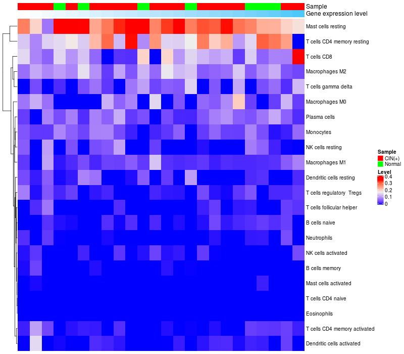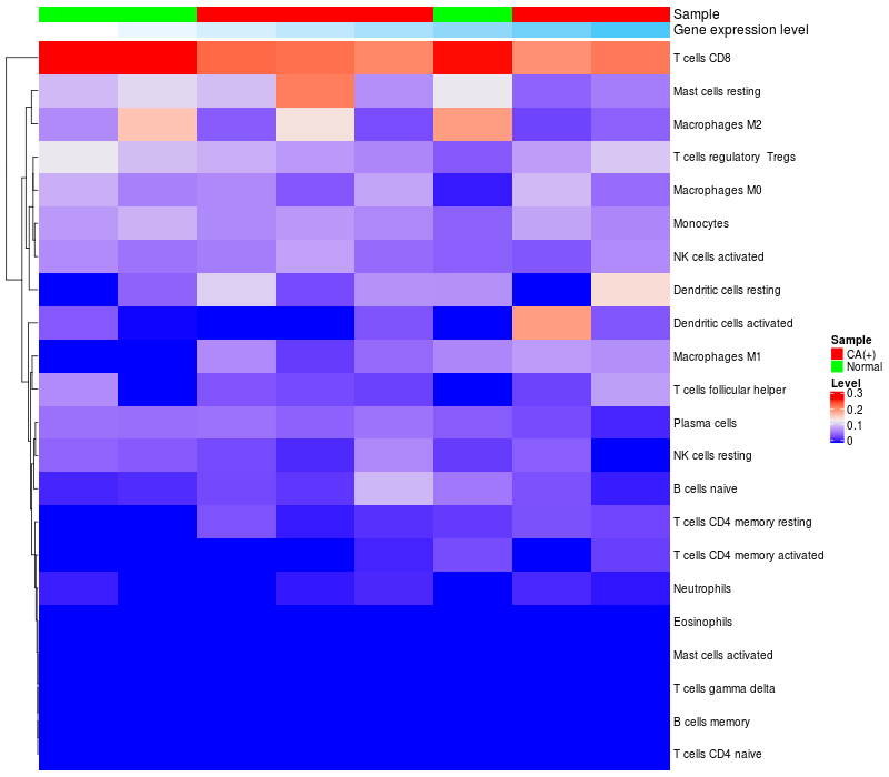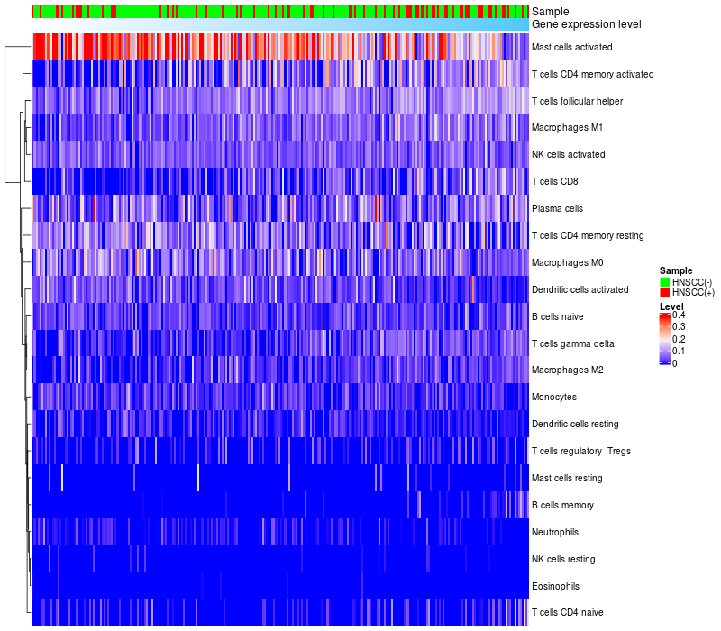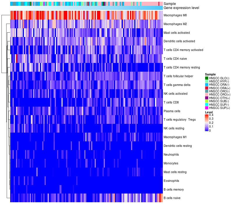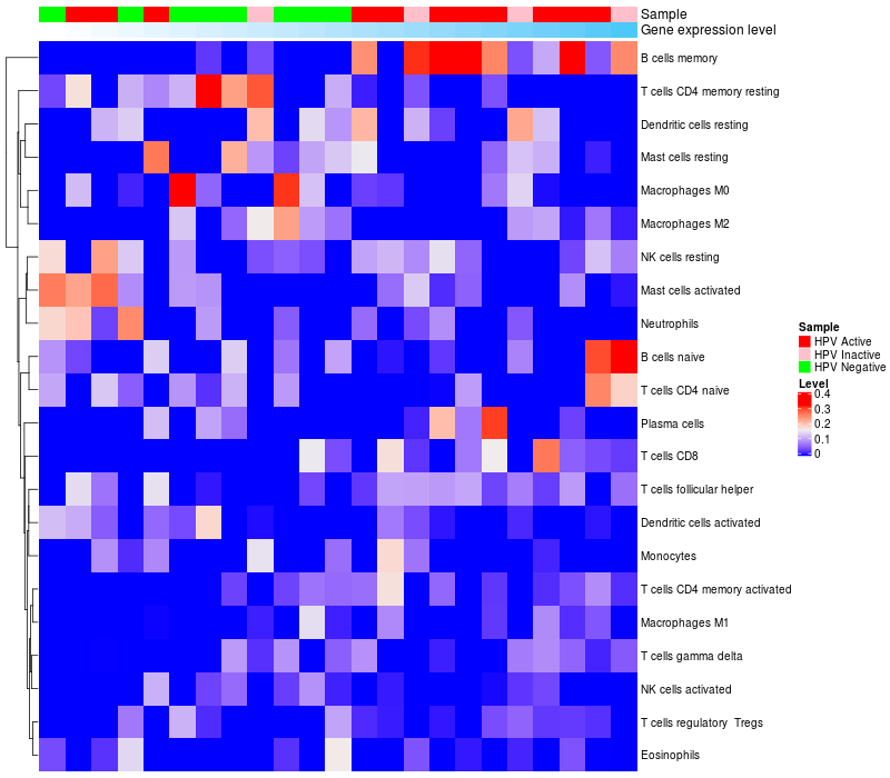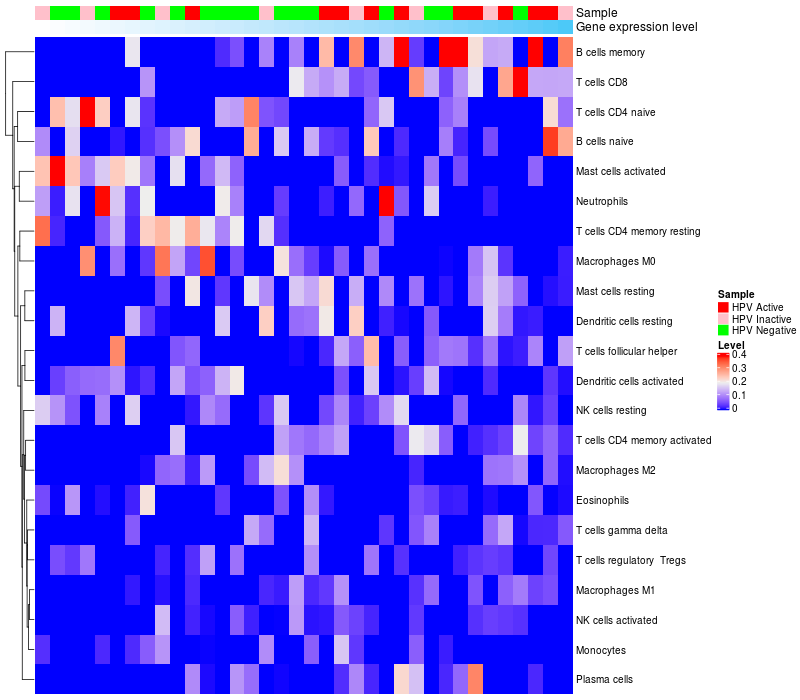 Lollipop of CD5 expression and immune infiltrating cell level correlation result in HPV+ samples
