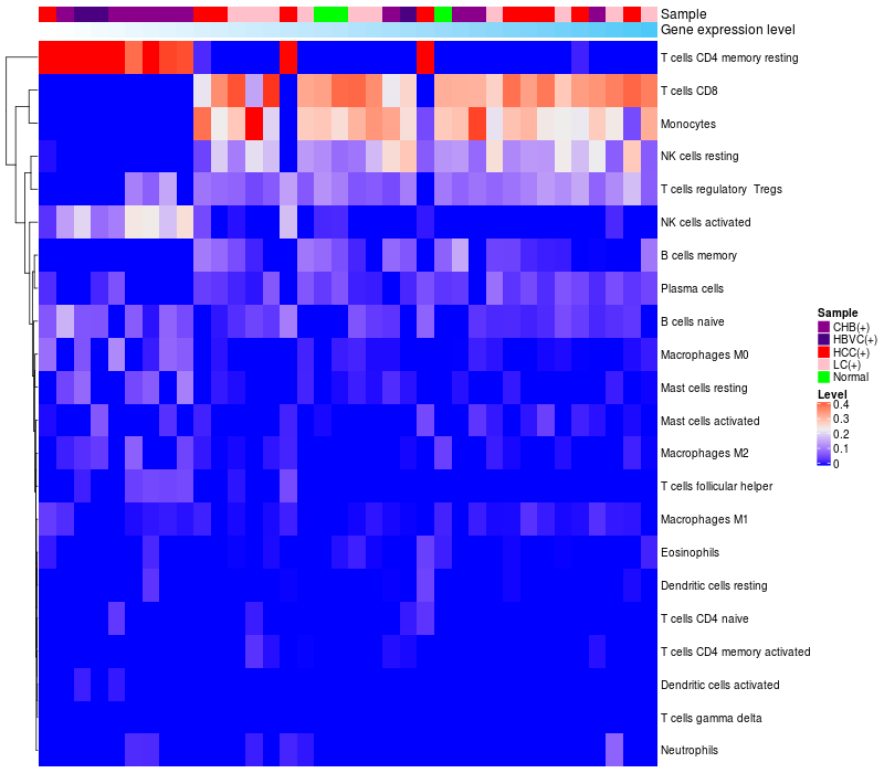 Relationship between gene expression and immune infiltrating cell level