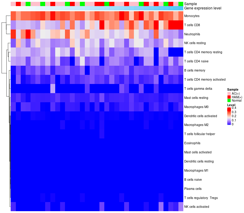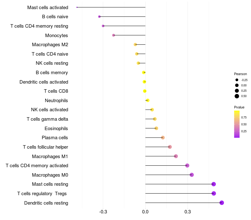 Relationship between gene expression and immune infiltrating cell level