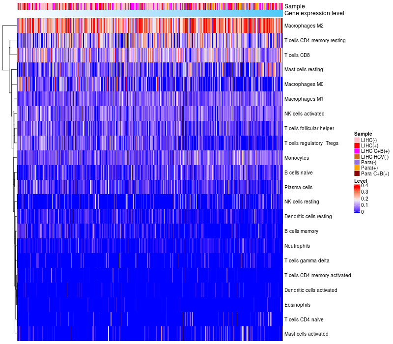 Relationship between gene expression and immune infiltrating cell level