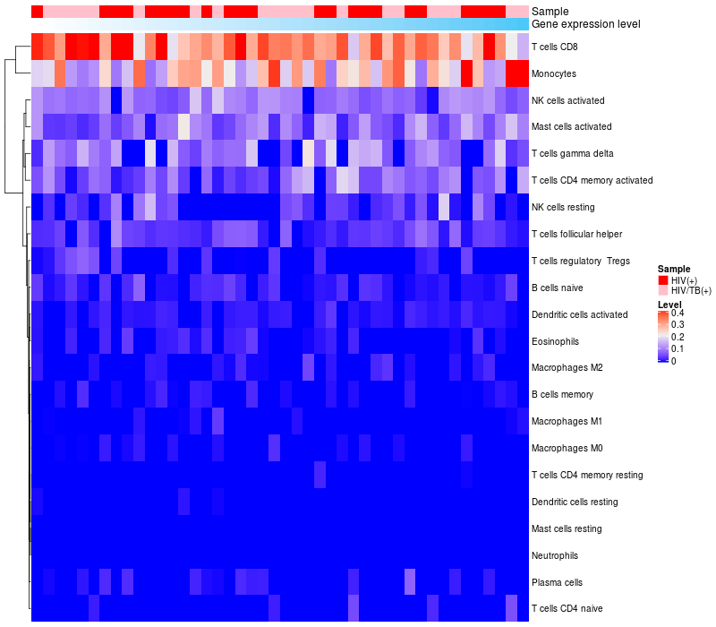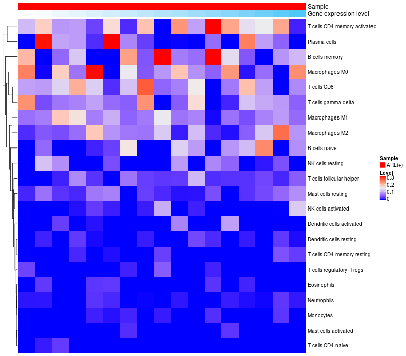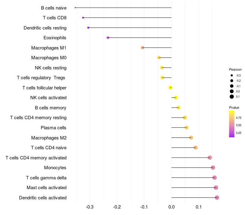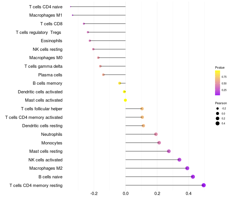Relationship between gene expression and immune infiltrating cell level