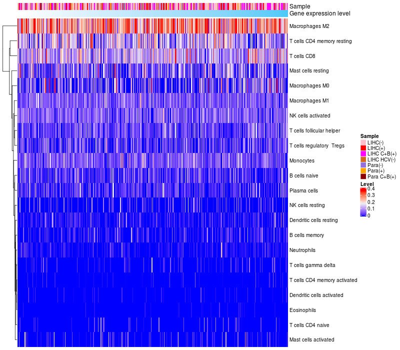 Relationship between gene expression and immune infiltrating cell level