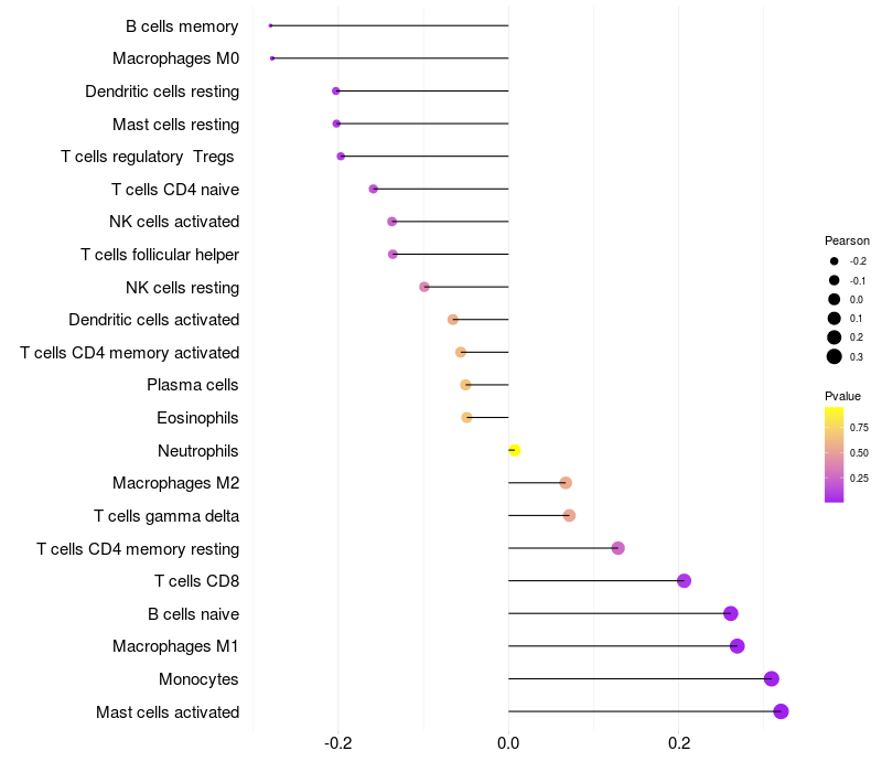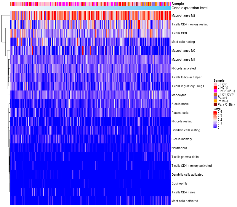 Relationship between gene expression and immune infiltrating cell level