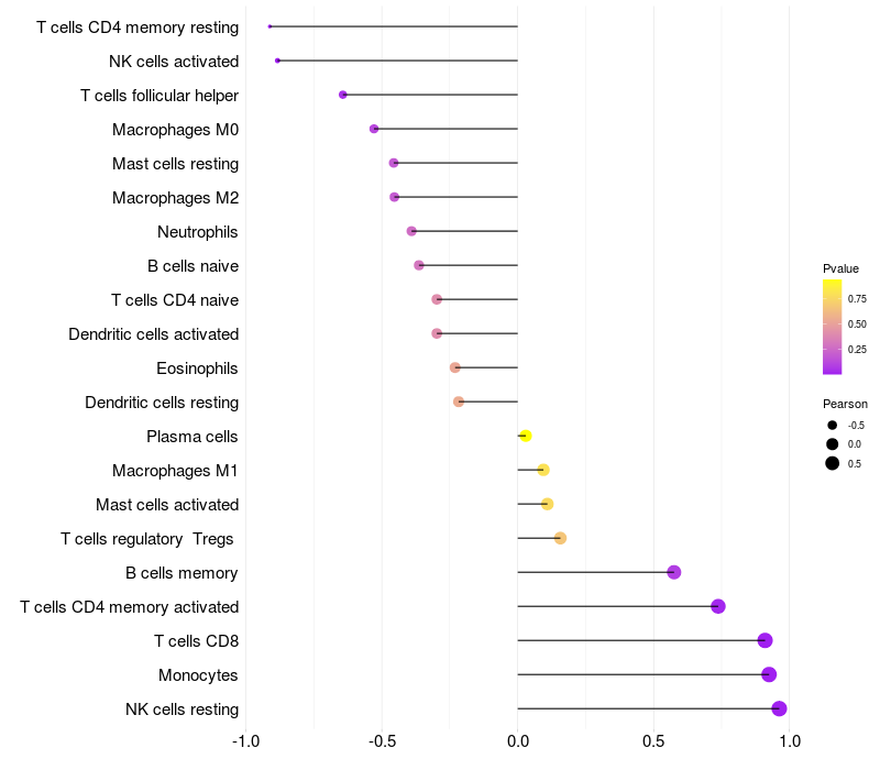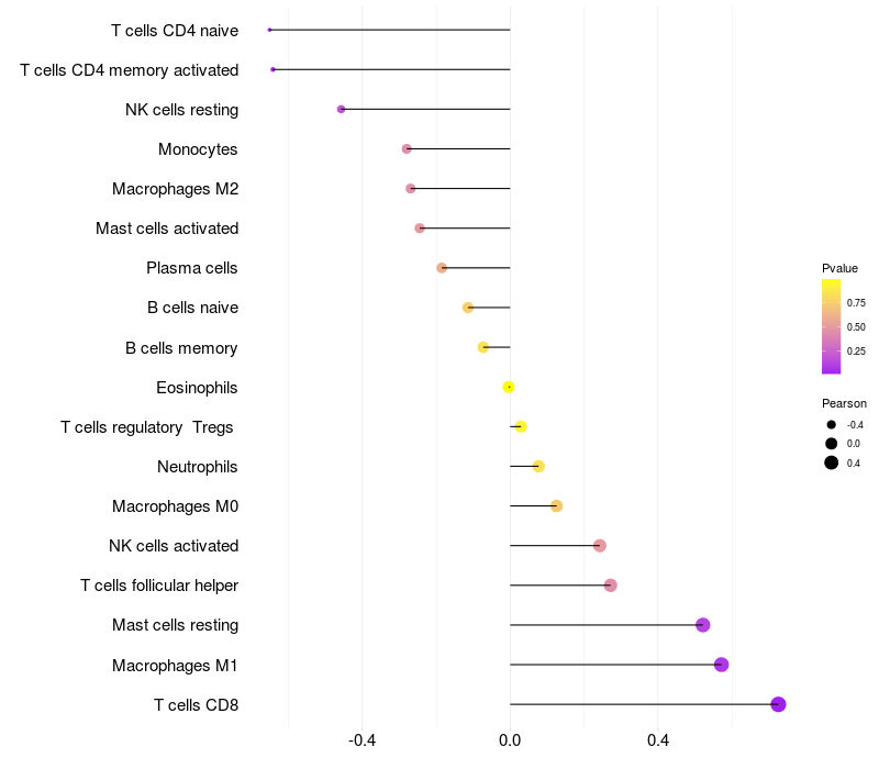 Lollipop of CDH23 expression and immune infiltrating cell level correlation result in HBV+ Liver cirrhosis samples