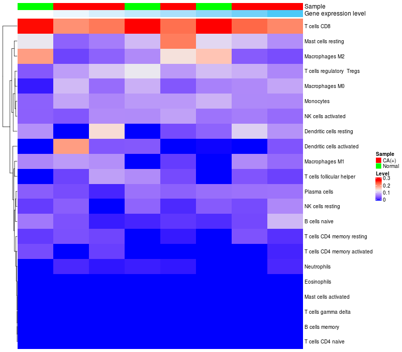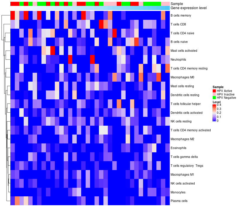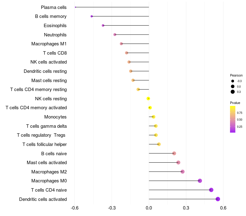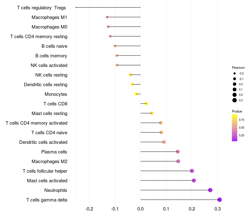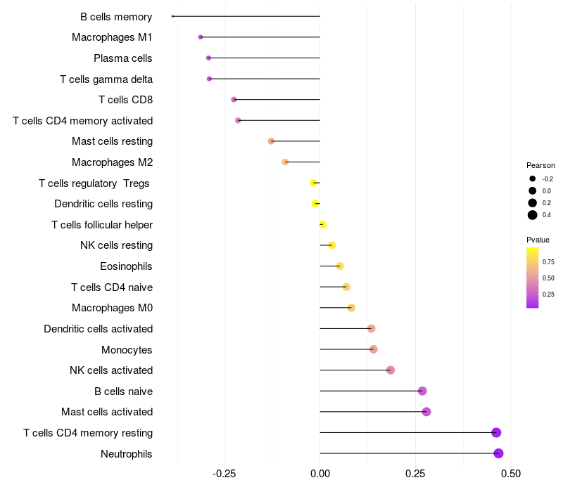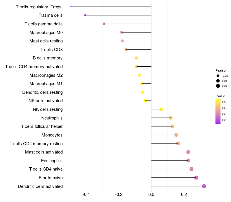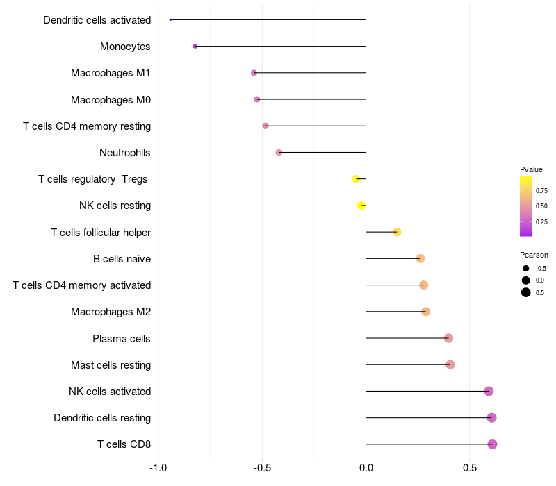 Lollipop of CDHR2 expression and immune infiltrating cell level correlation result in HPV+ samples