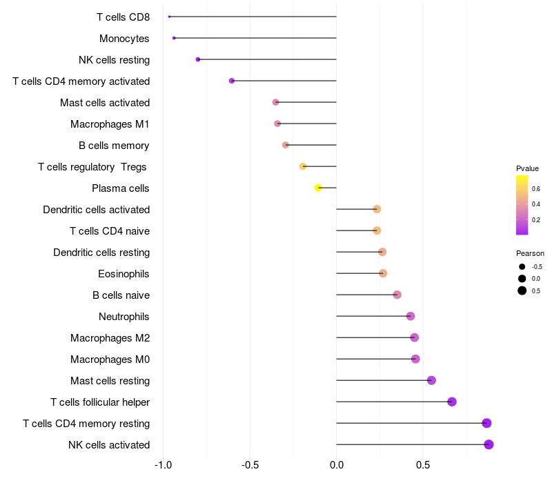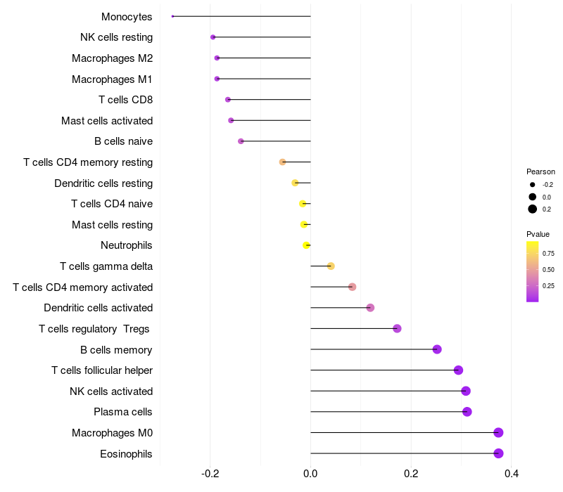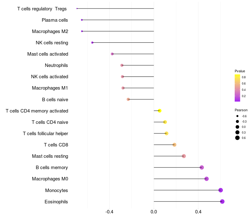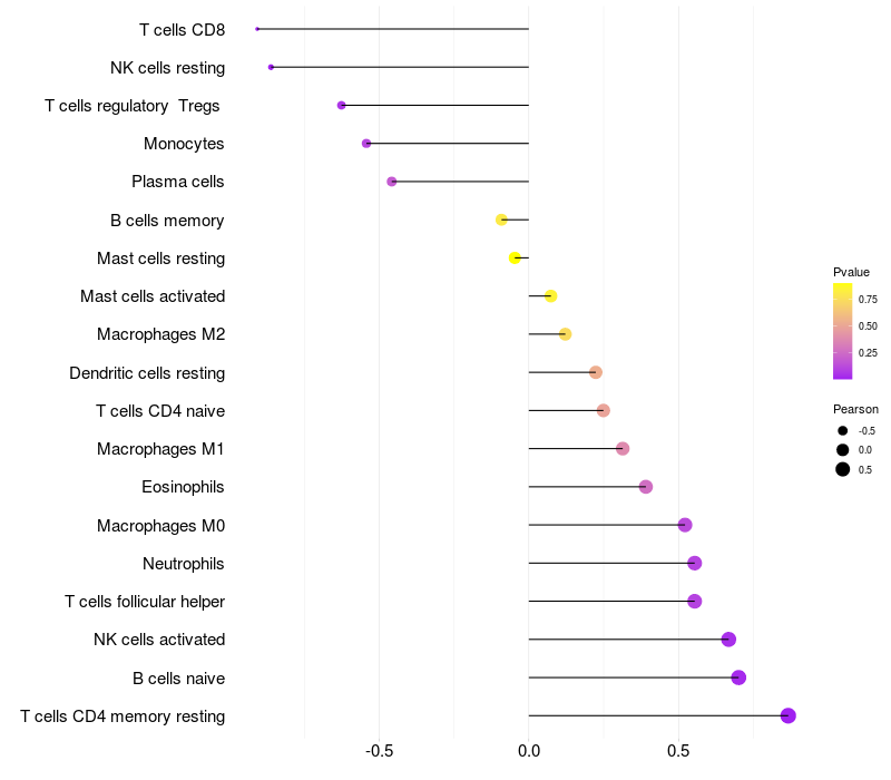 Lollipop of CDK2AP1 expression and immune infiltrating cell level correlation result in HBV+ Liver cirrhosis samples
