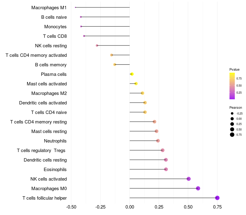 Relationship between gene expression and immune infiltrating cell level