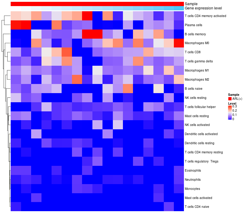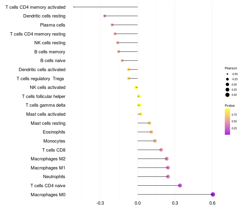 Relationship between gene expression and immune infiltrating cell level