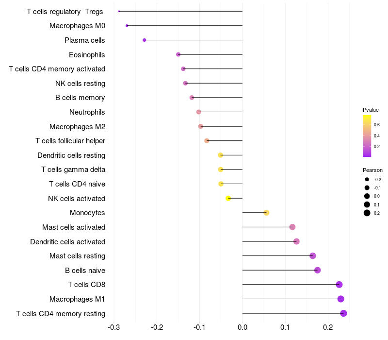 Relationship between gene expression and immune infiltrating cell level