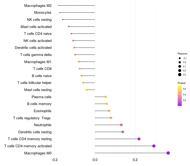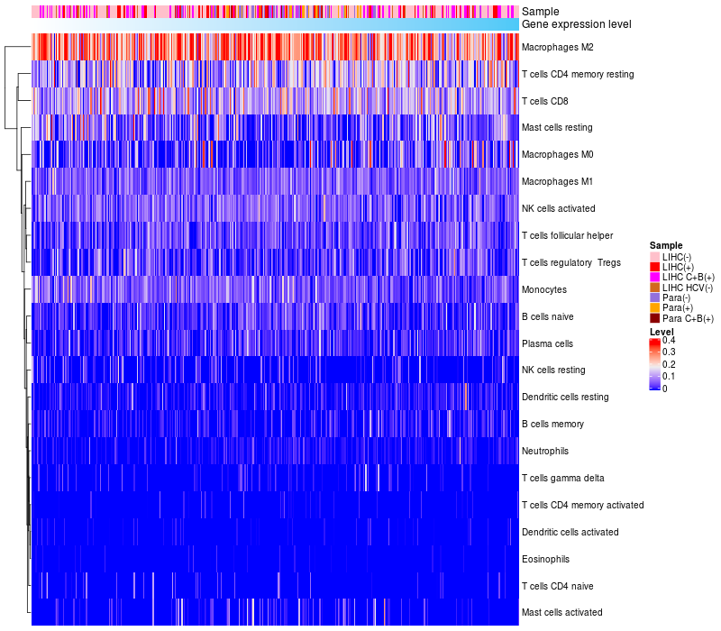 Relationship between gene expression and immune infiltrating cell level