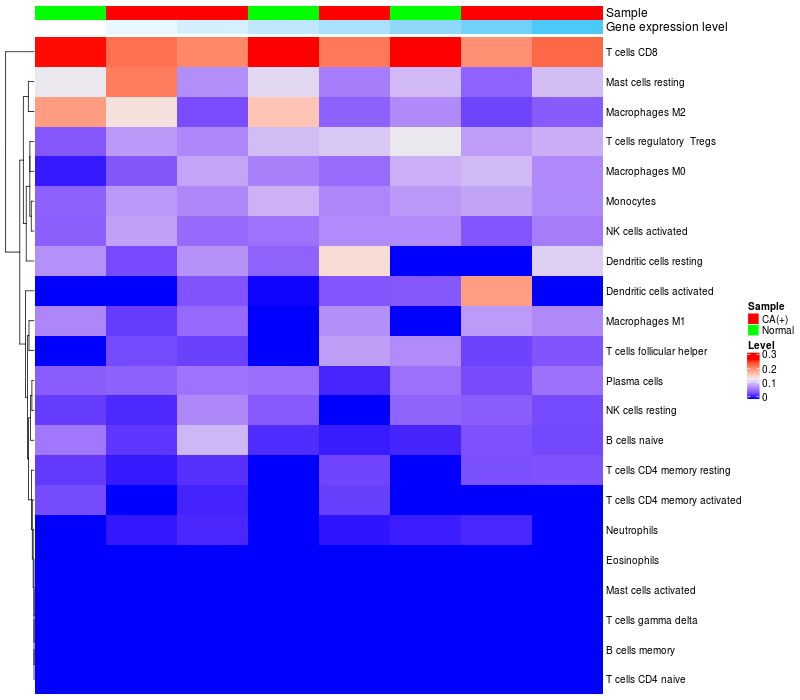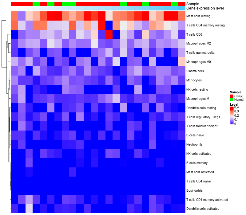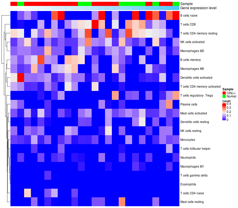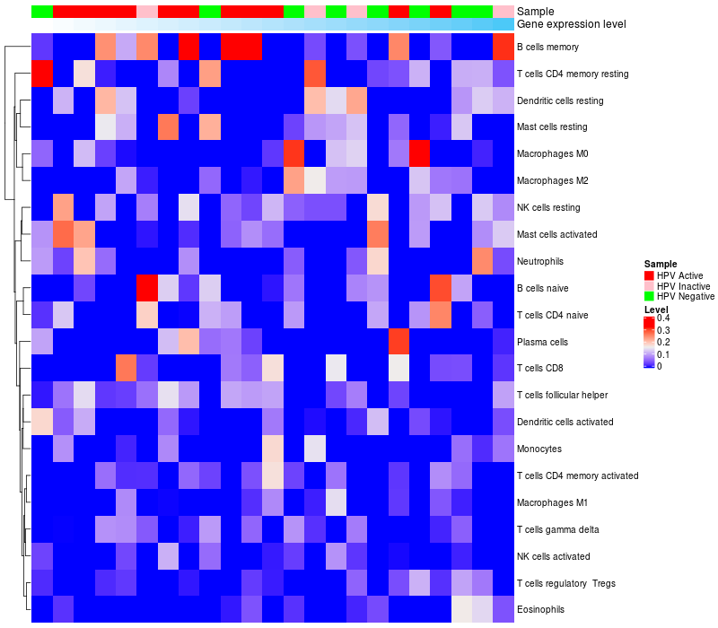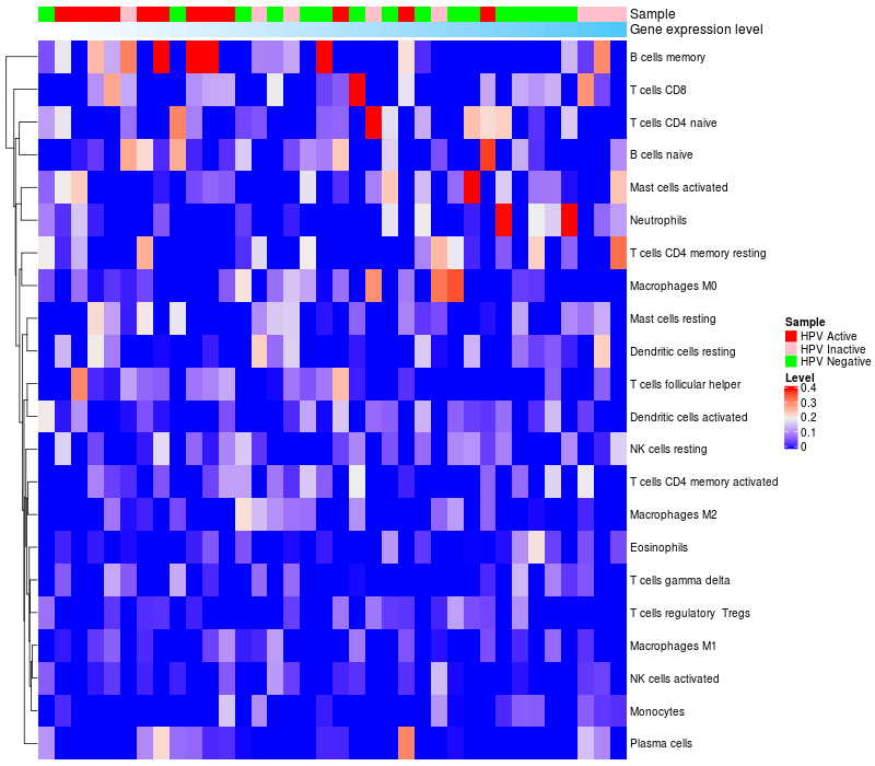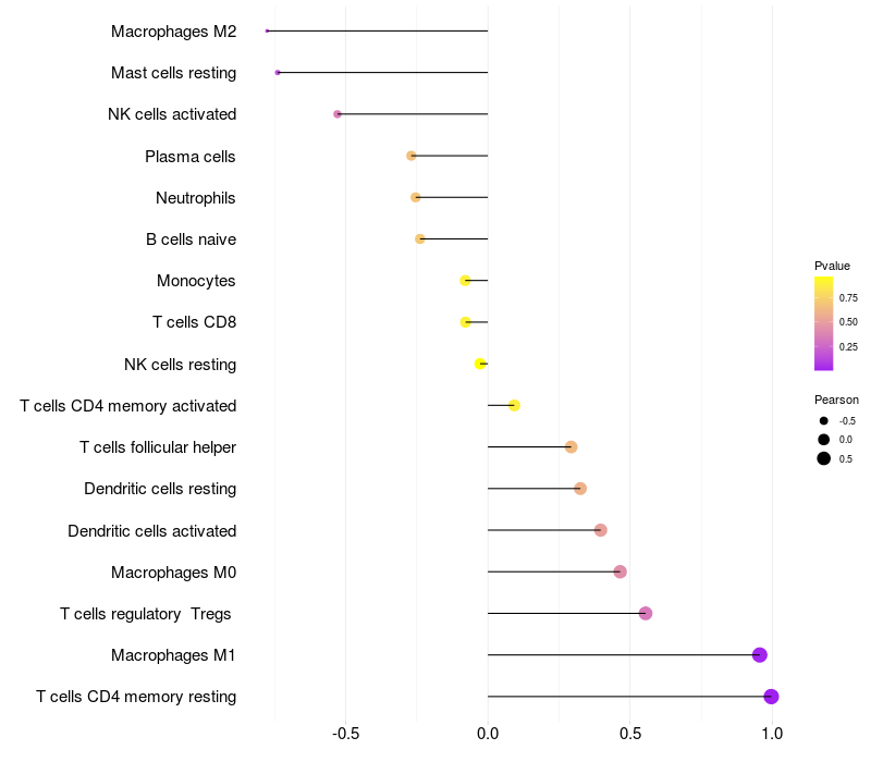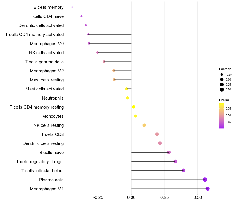 Lollipop of CEACAM19 expression and immune infiltrating cell level correlation result in HPV+ samples