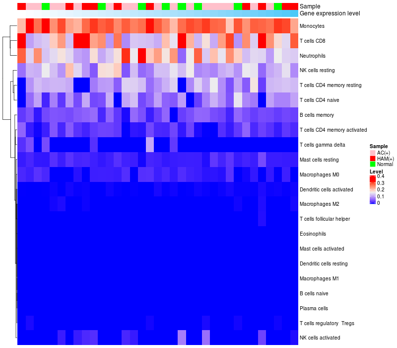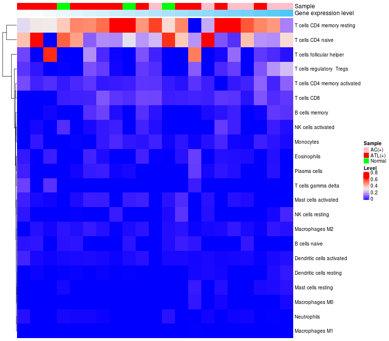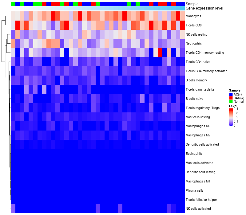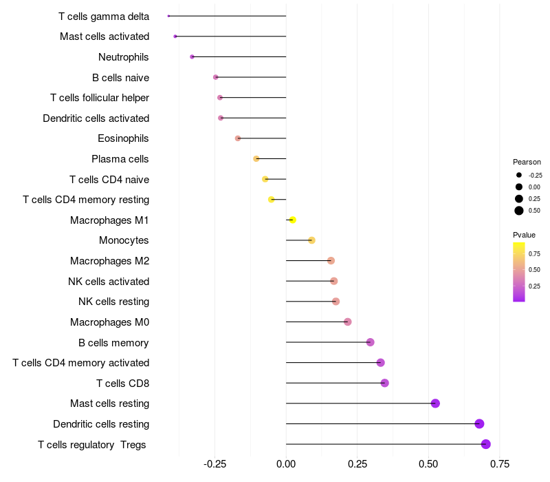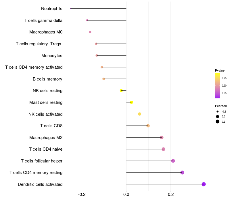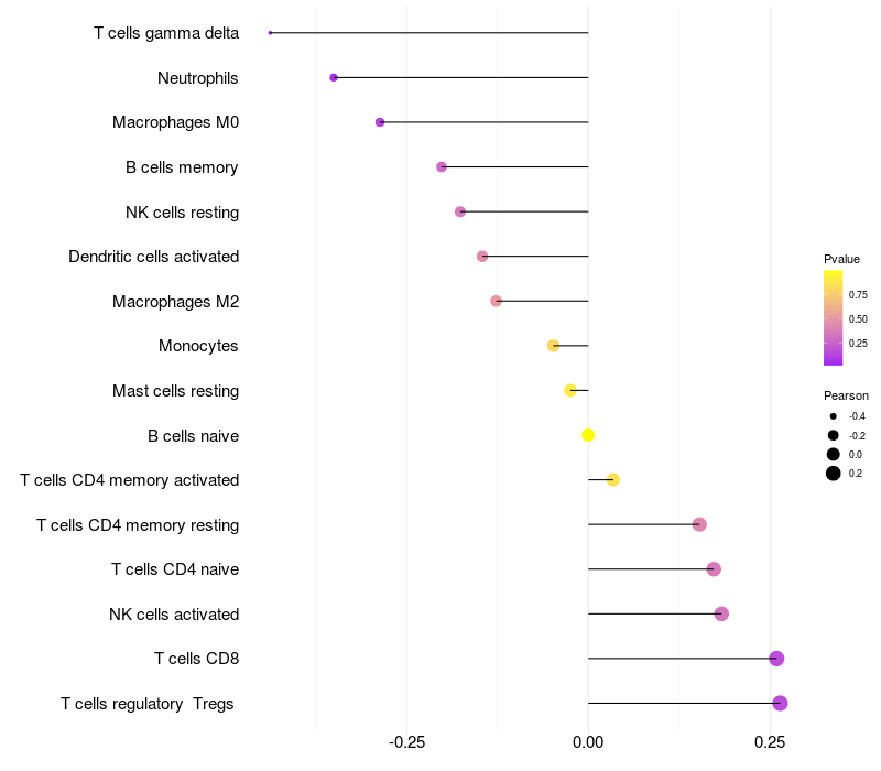 Lollipop of CENPJ expression and immune infiltrating cell level correlation result in HTLV1+ samples
