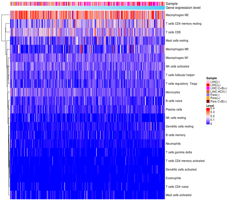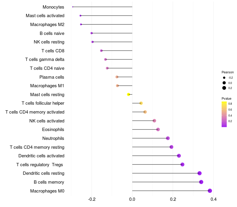 Relationship between gene expression and immune infiltrating cell level