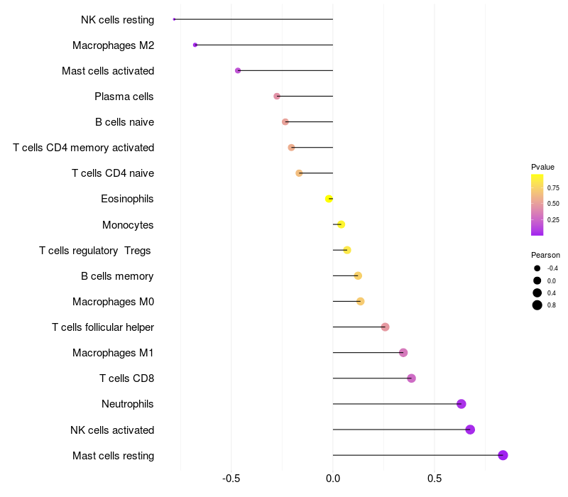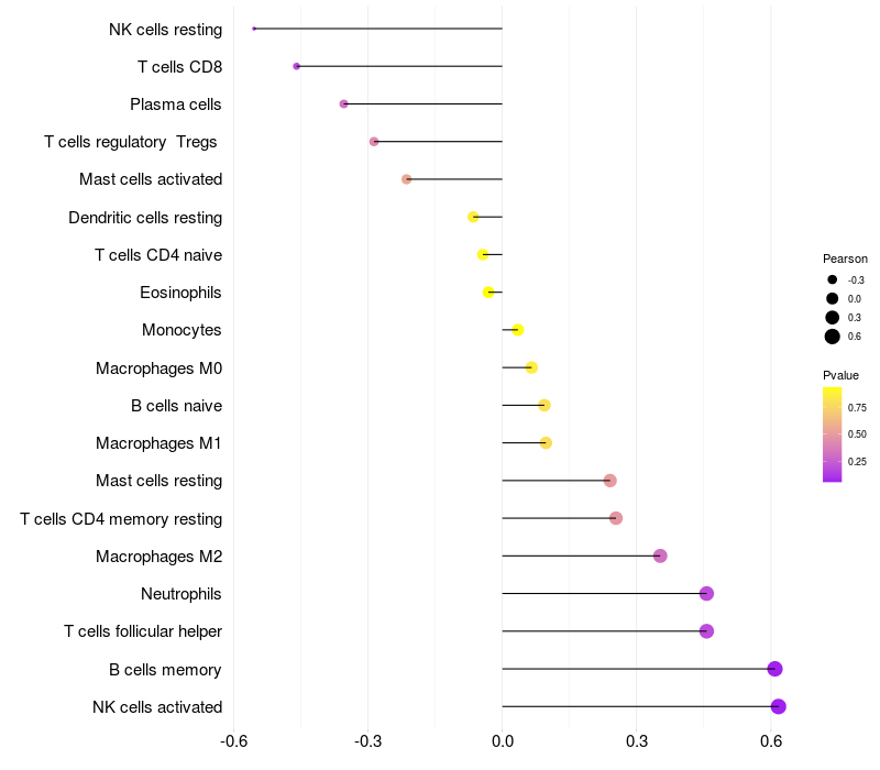 Lollipop of CEP63 expression and immune infiltrating cell level correlation result in HBV+ samples