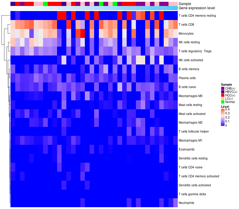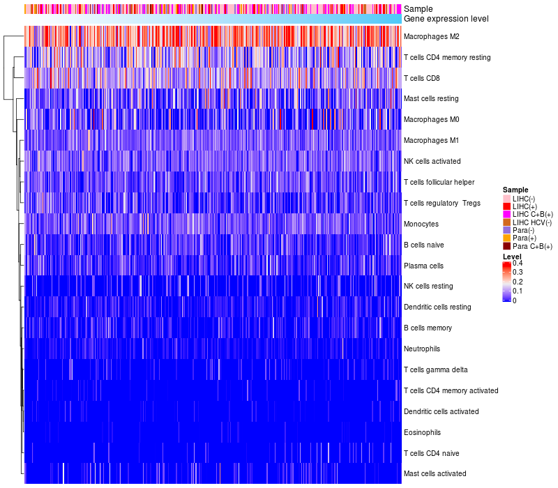Liver hepatocellular carcinoma HCV (HBV+)(86), Liver hepatocellular carcinoma HCV (HBV-)(19), Liver hepatocellular carcinoma (HBV+)(209), Liver hepatocellular carcinoma (HBV+)(60), Paracancerous HCV (HBV+)(4), Paracancerous (HBV-)(28), Paracancerous (HBV+)(18) |