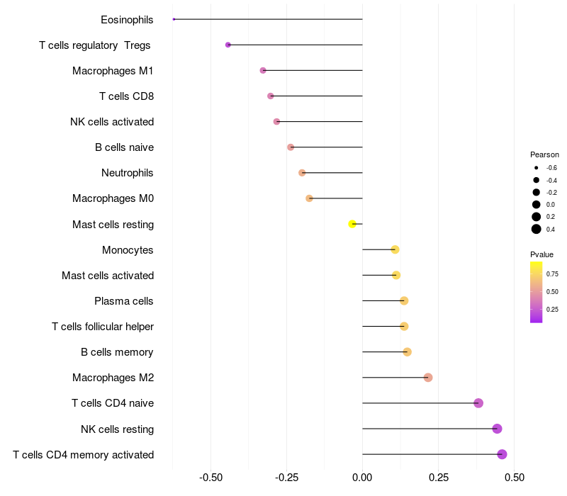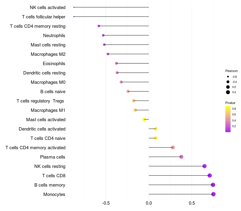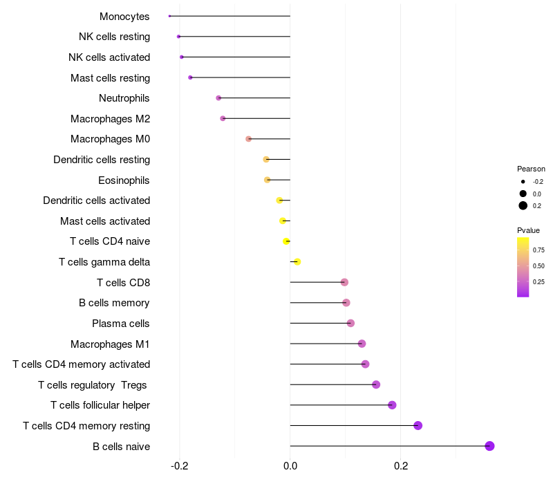 Lollipop of CERKL expression and immune infiltrating cell level correlation result in HBV+ Chronic HBV (CHB) infection samples