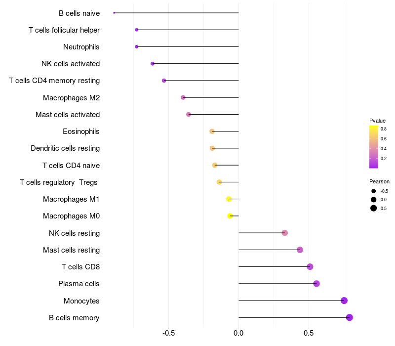 Lollipop of CERKL expression and immune infiltrating cell level correlation result in HBV+ Liver cirrhosis samples