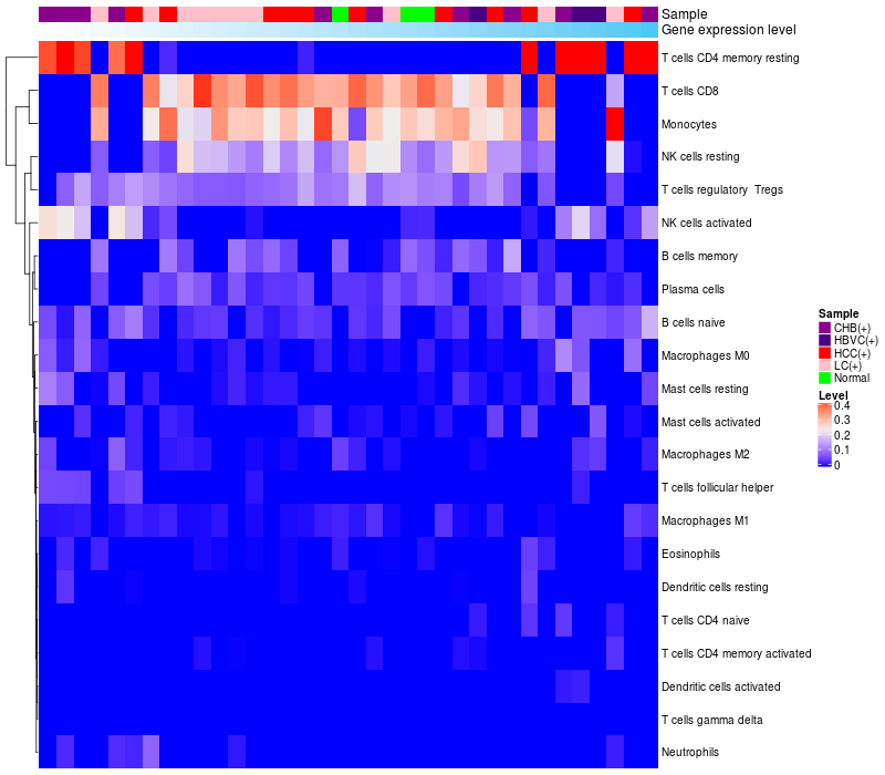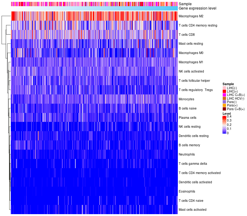 Liver hepatocellular carcinoma HCV (HBV+)(86), Liver hepatocellular carcinoma HCV (HBV-)(19), Liver hepatocellular carcinoma (HBV+)(209), Liver hepatocellular carcinoma (HBV+)(60), Paracancerous HCV (HBV+)(4), Paracancerous (HBV-)(28), Paracancerous (HBV+)(18) |