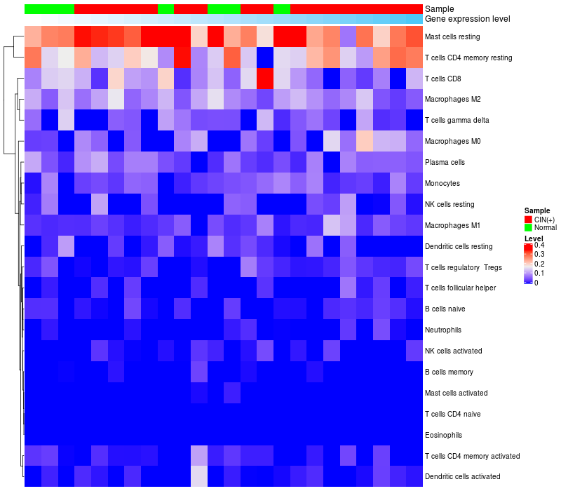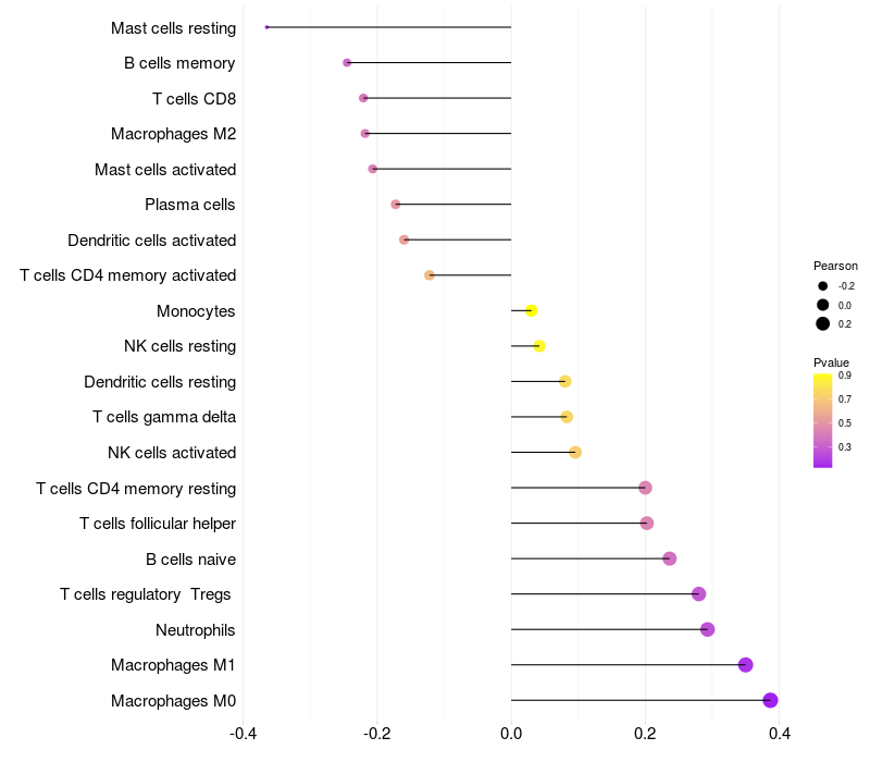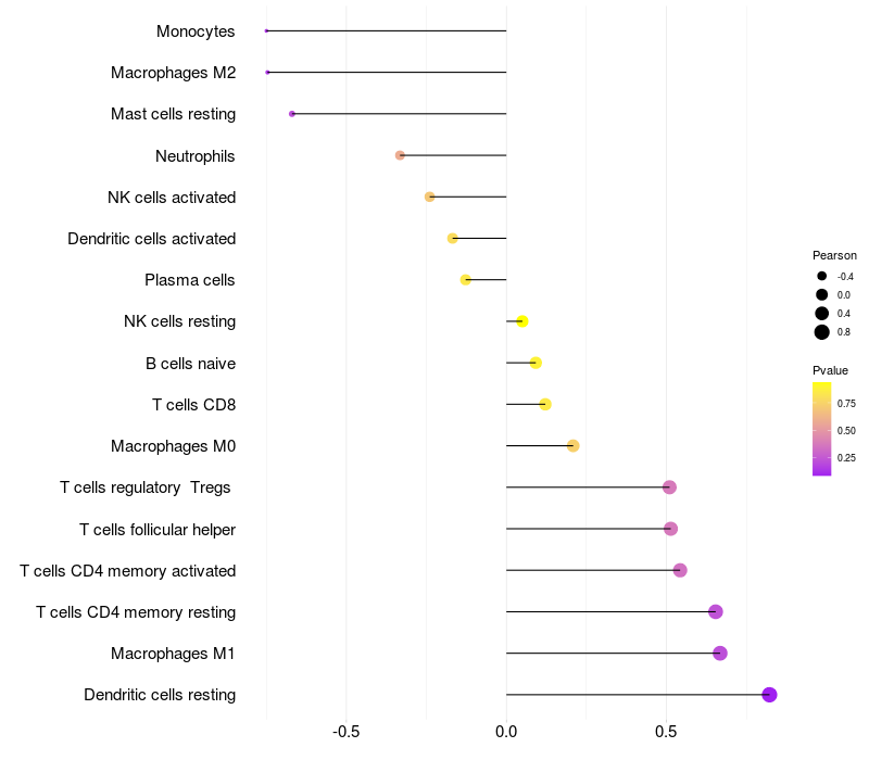 Lollipop of CFHR4 expression and immune infiltrating cell level correlation result in HPV+ samples