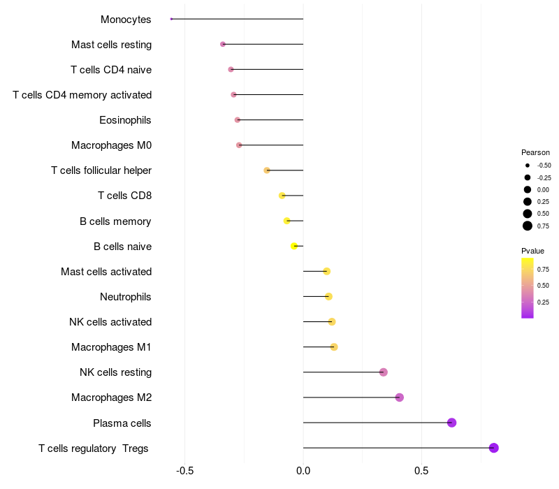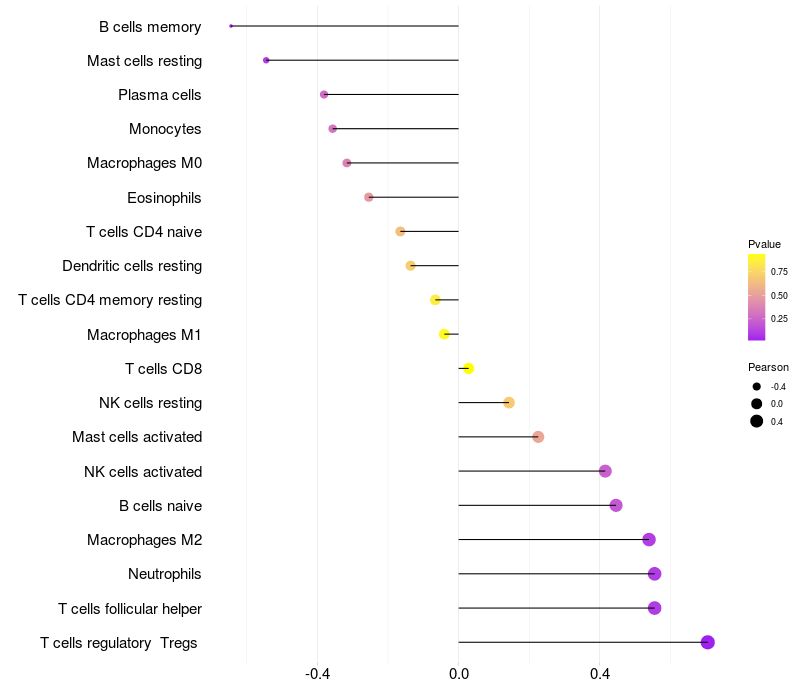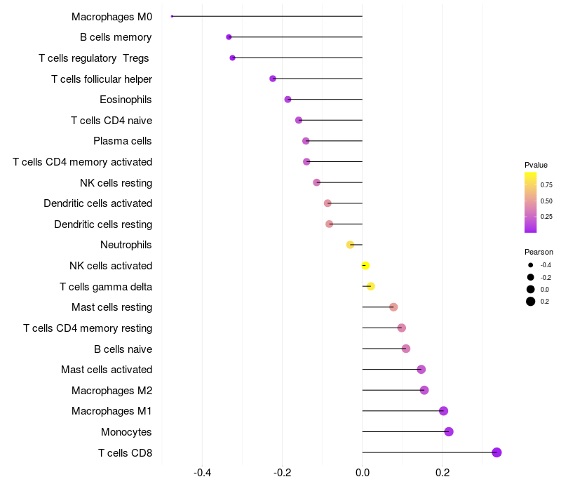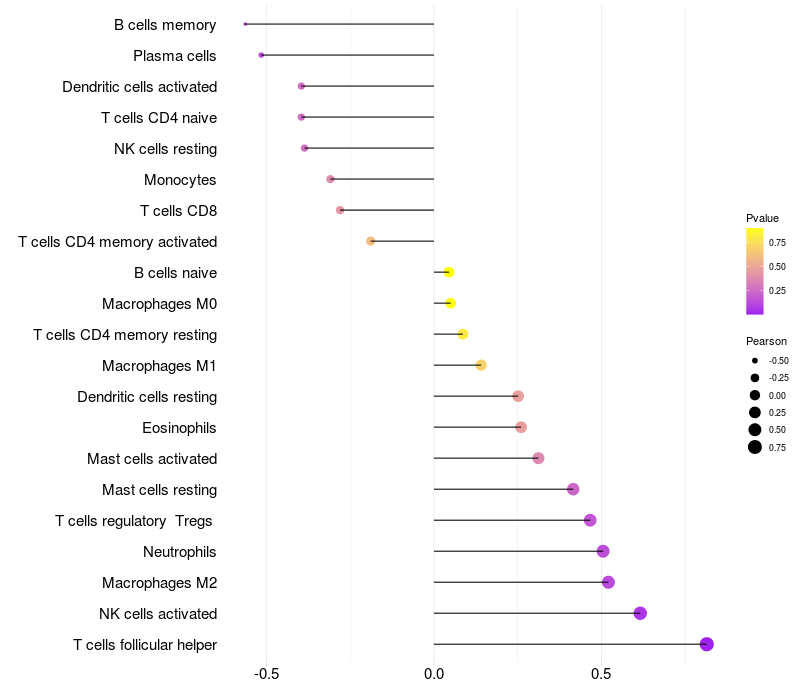 Lollipop of CGNL1 expression and immune infiltrating cell level correlation result in HBV+ Liver cirrhosis samples