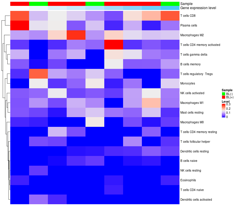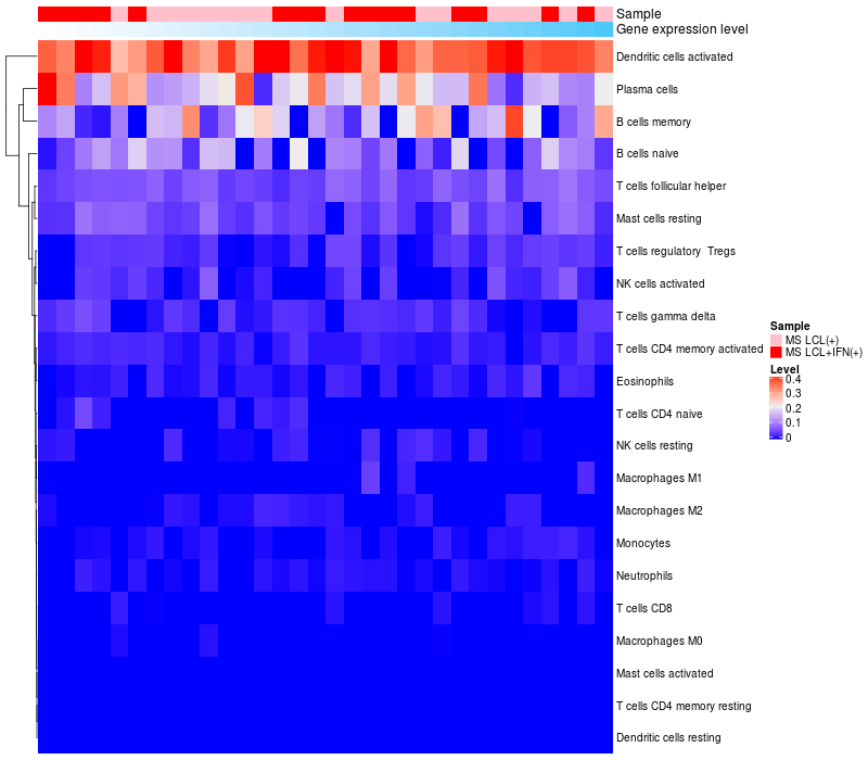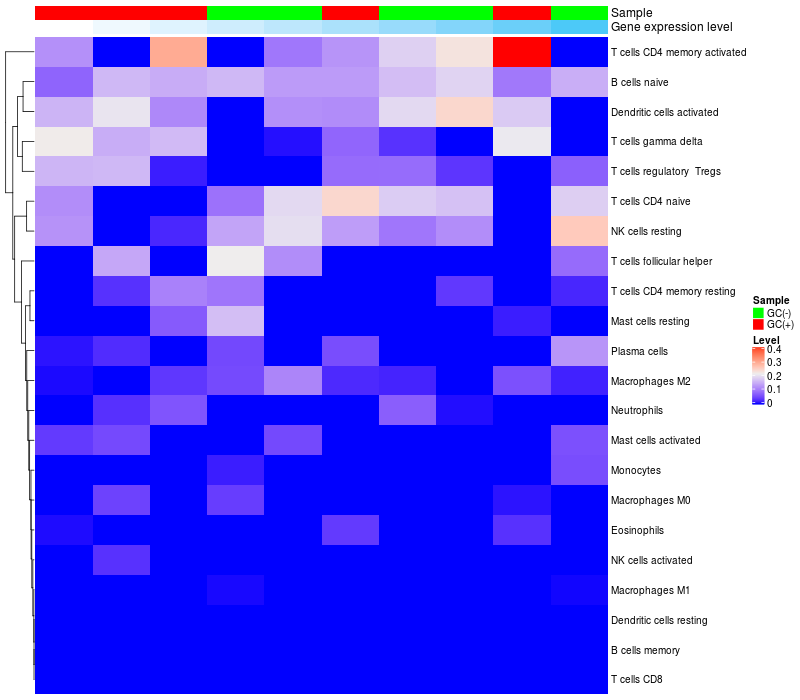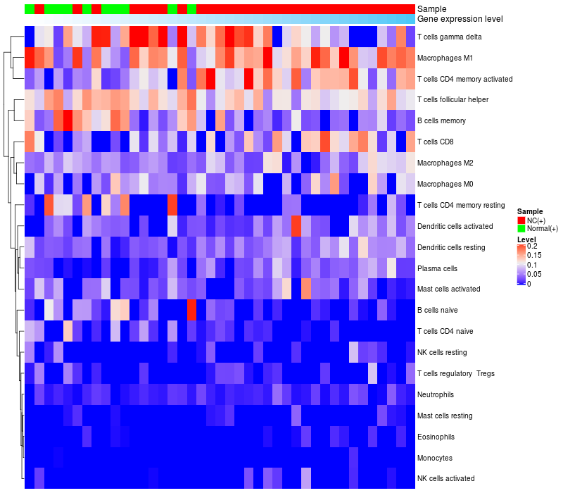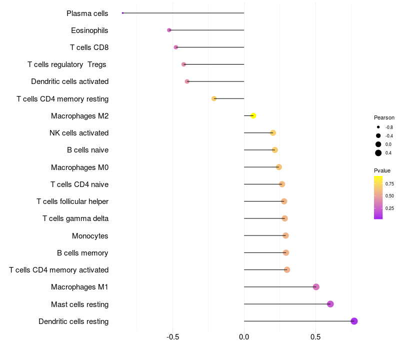 Lollipop of CHCHD3 expression and immune infiltrating cell level correlation result in EBV+ samples