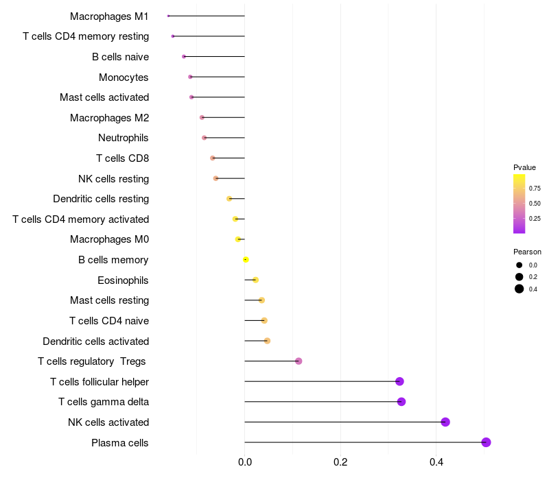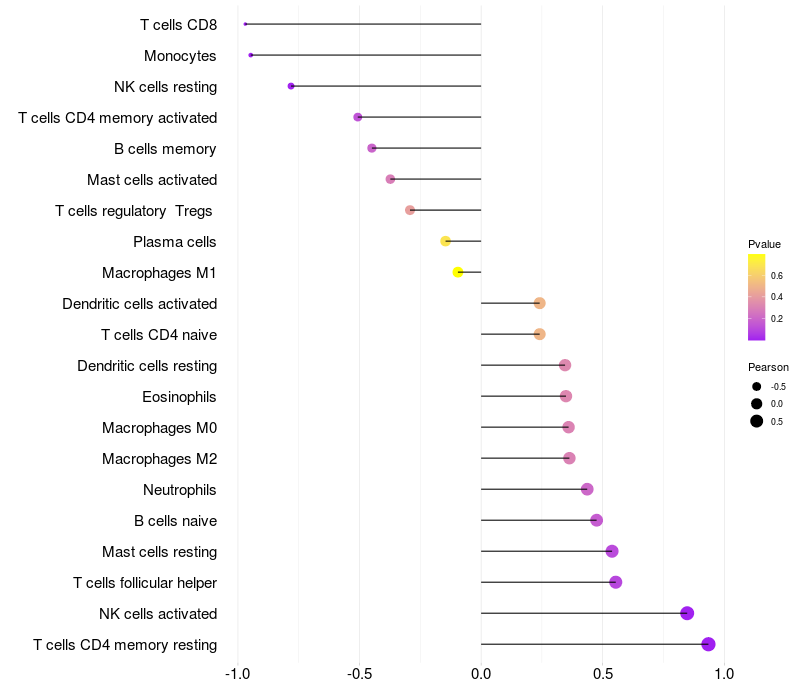 Lollipop of CHCHD6 expression and immune infiltrating cell level correlation result in HBV+ Liver cirrhosis samples
