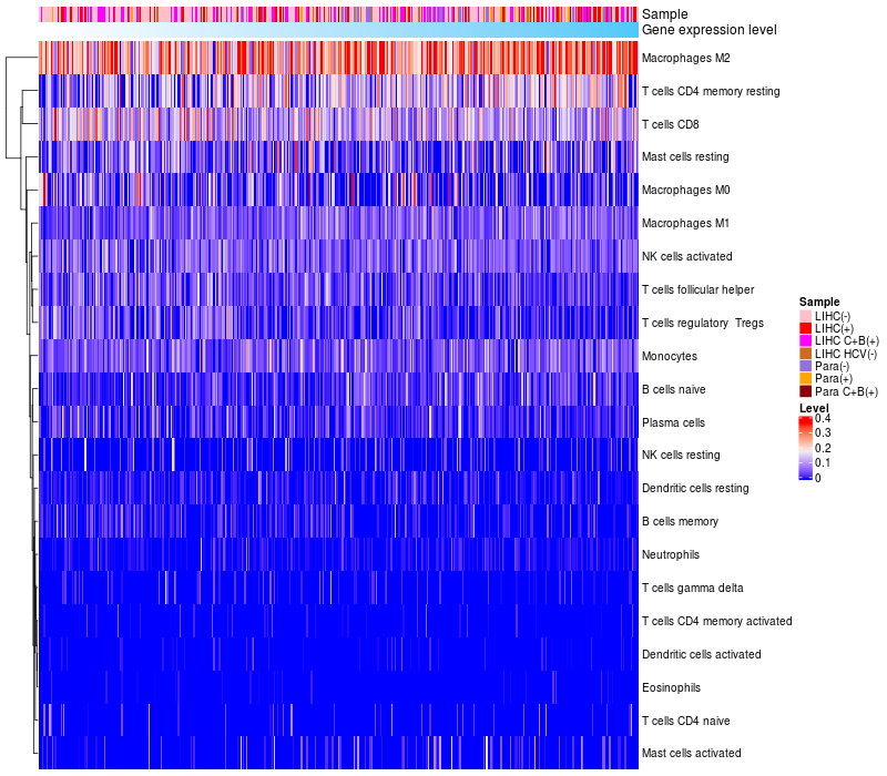 Liver hepatocellular carcinoma HCV (HBV+)(86), Liver hepatocellular carcinoma HCV (HBV-)(19), Liver hepatocellular carcinoma (HBV+)(209), Liver hepatocellular carcinoma (HBV+)(60), Paracancerous HCV (HBV+)(4), Paracancerous (HBV-)(28), Paracancerous (HBV+)(18) |