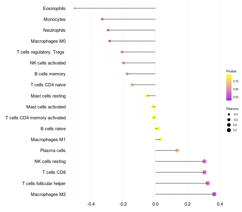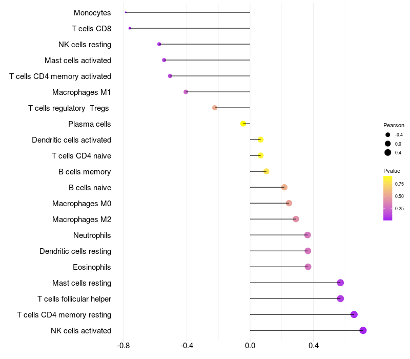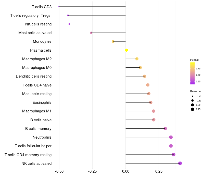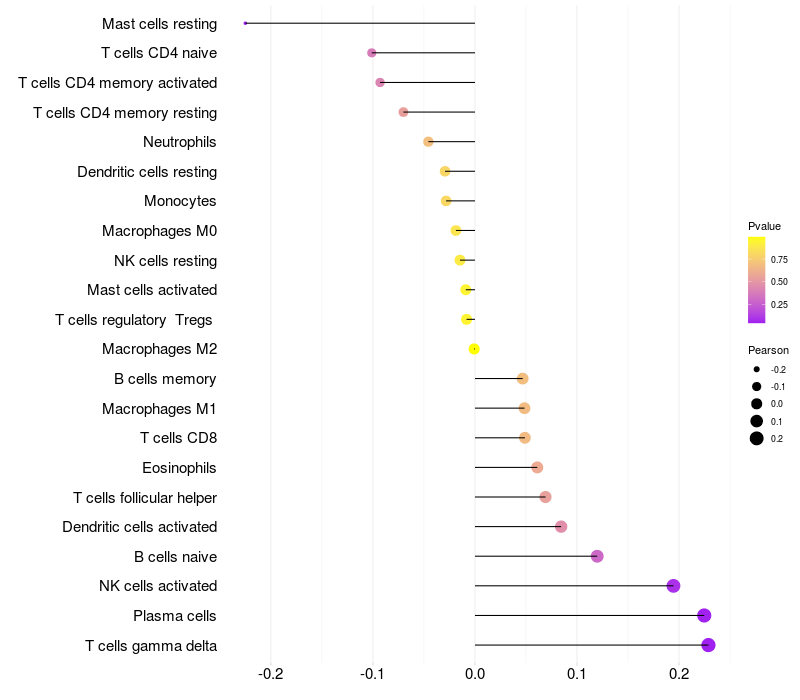 Lollipop of CHIC1 expression and immune infiltrating cell level correlation result in HBV+ Liver cirrhosis samples