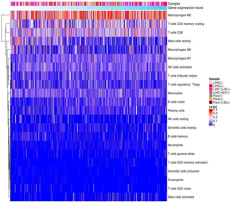 Relationship between gene expression and immune infiltrating cell level