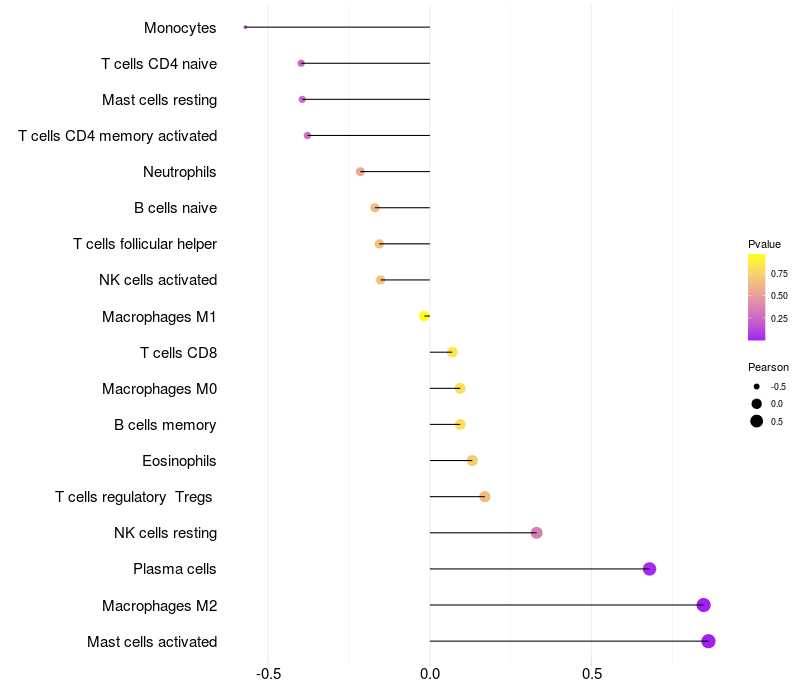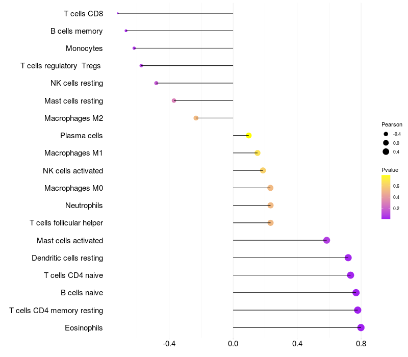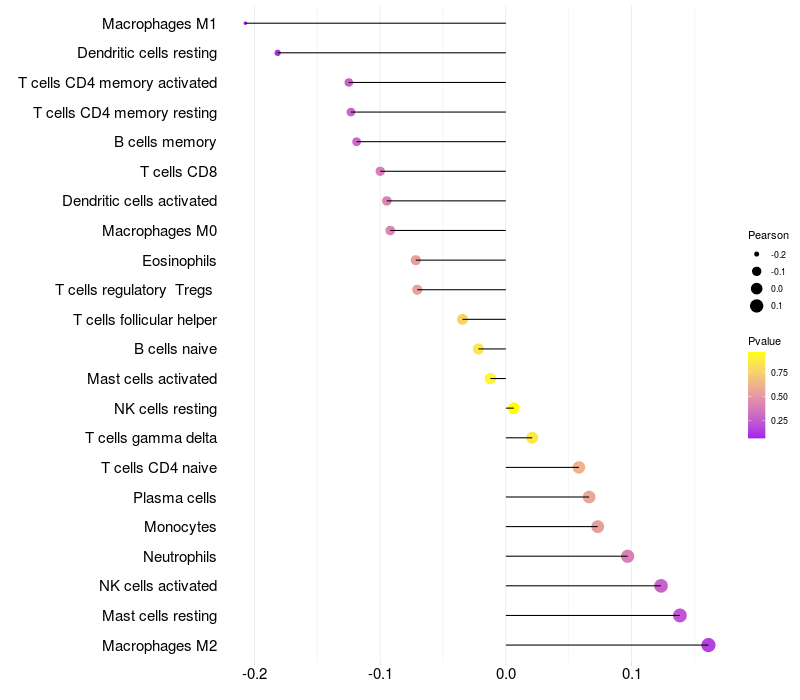 Lollipop of CHID1 expression and immune infiltrating cell level correlation result in HBV+ Liver cirrhosis samples