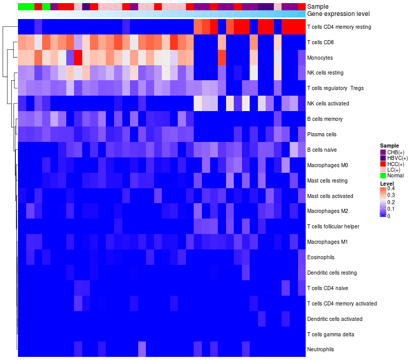 Liver hepatocellular carcinoma HCV (HBV+)(86), Liver hepatocellular carcinoma HCV (HBV-)(19), Liver hepatocellular carcinoma (HBV+)(209), Liver hepatocellular carcinoma (HBV+)(60), Paracancerous HCV (HBV+)(4), Paracancerous (HBV-)(28), Paracancerous (HBV+)(18) |