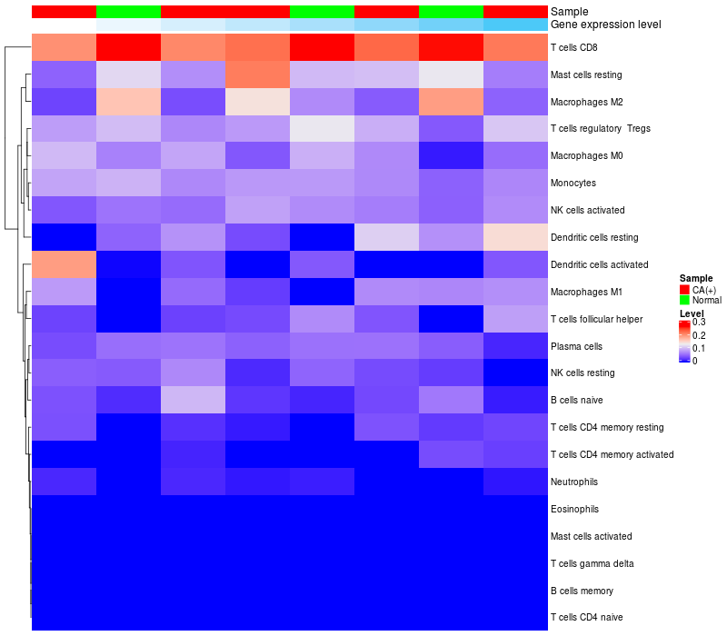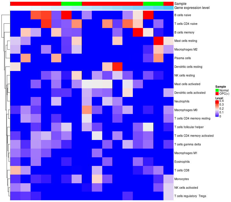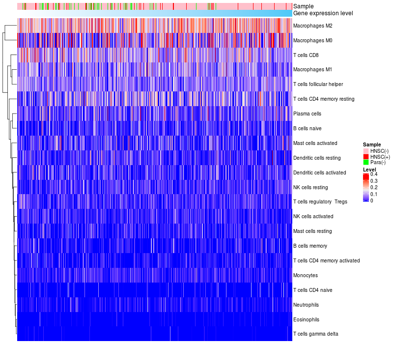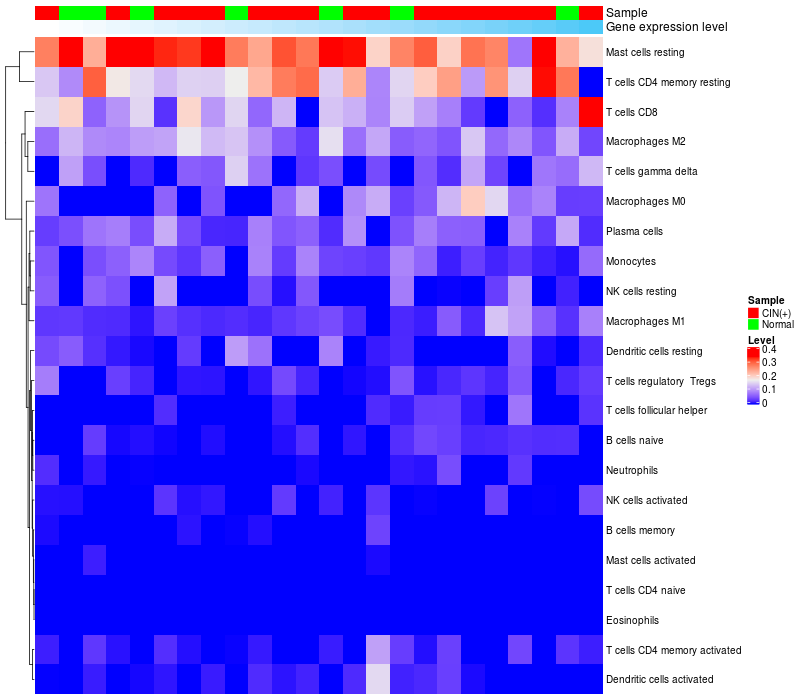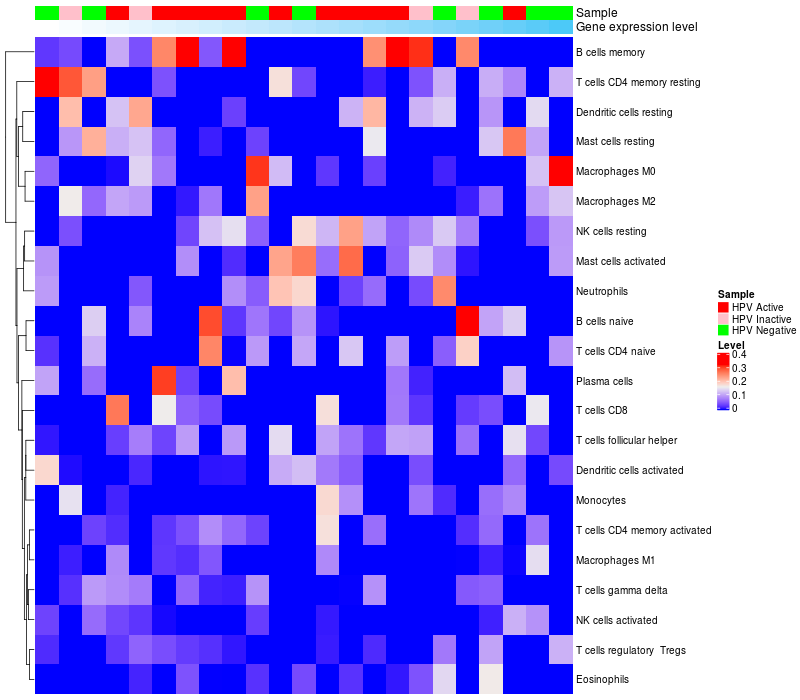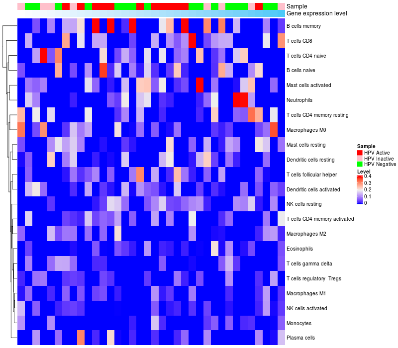 Lollipop of CHRM5 expression and immune infiltrating cell level correlation result in HPV+ samples