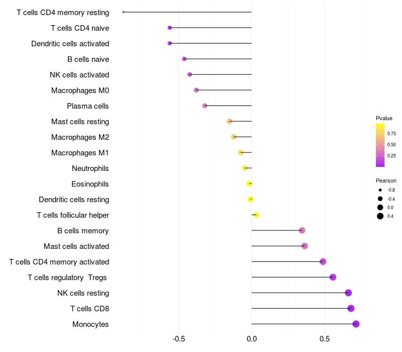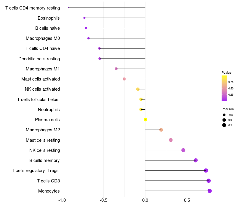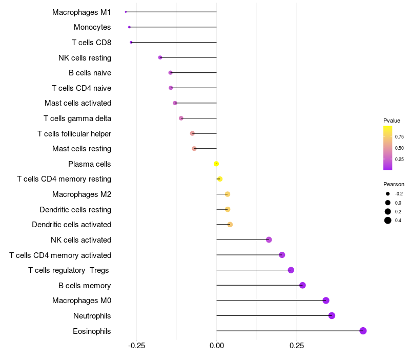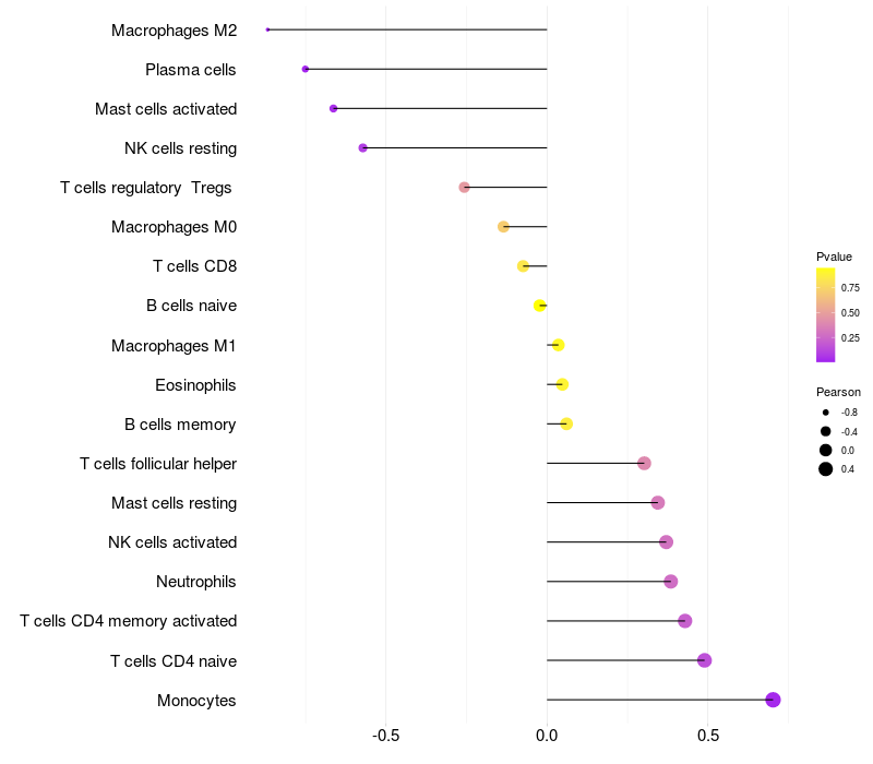 Lollipop of CHST11 expression and immune infiltrating cell level correlation result in HBV+ Liver cirrhosis samples