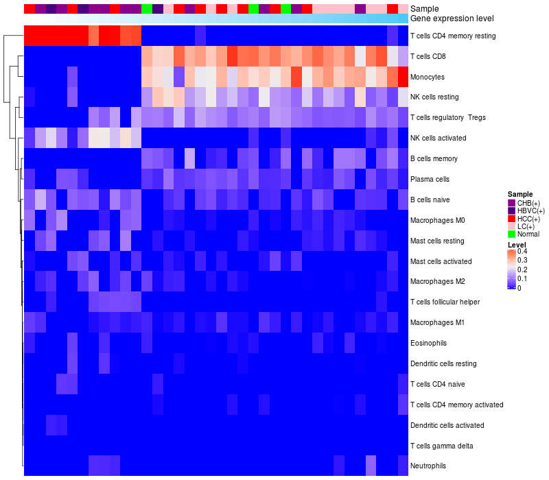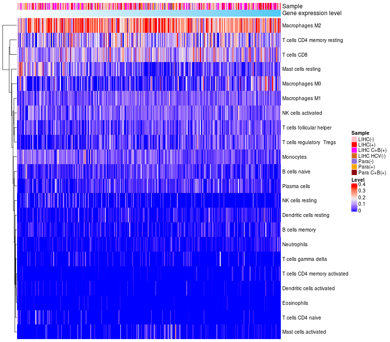 Liver hepatocellular carcinoma HCV (HBV+)(86), Liver hepatocellular carcinoma HCV (HBV-)(19), Liver hepatocellular carcinoma (HBV+)(209), Liver hepatocellular carcinoma (HBV+)(60), Paracancerous HCV (HBV+)(4), Paracancerous (HBV-)(28), Paracancerous (HBV+)(18) |