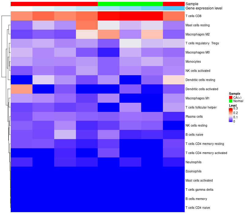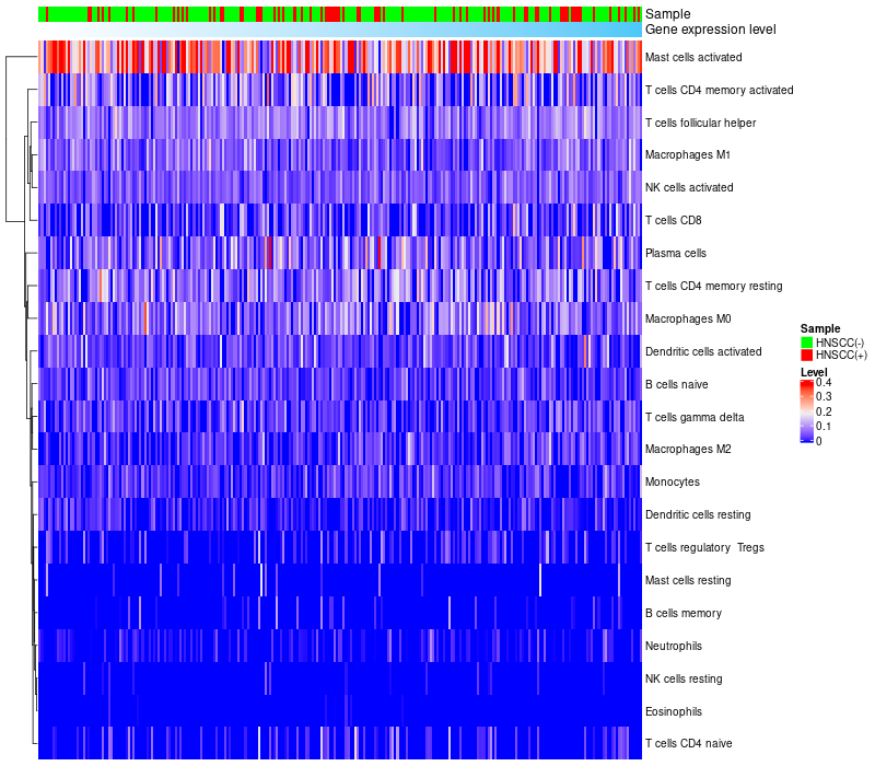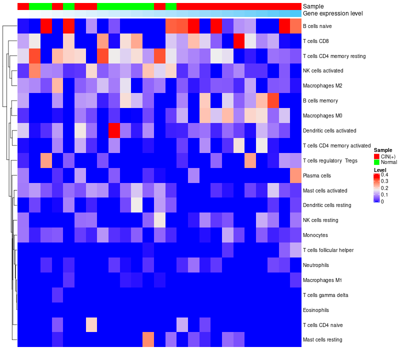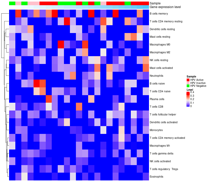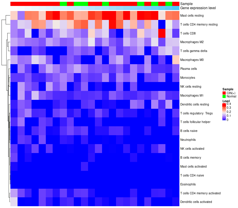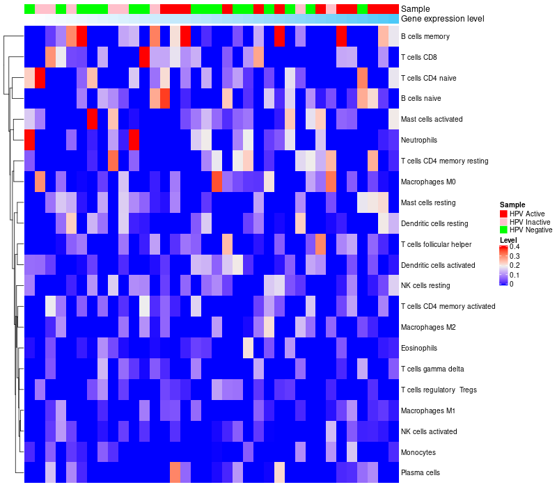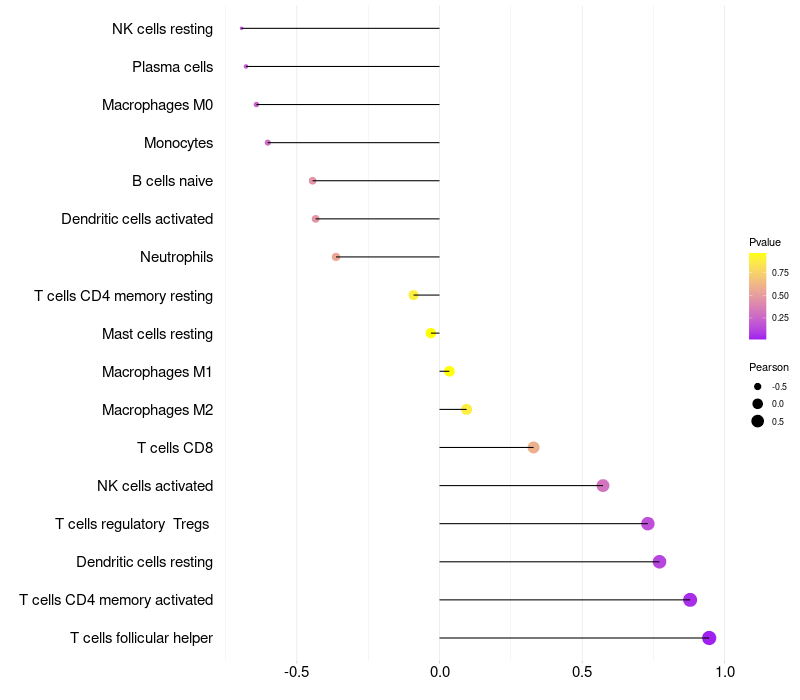 Lollipop of CHST14 expression and immune infiltrating cell level correlation result in HPV+ samples