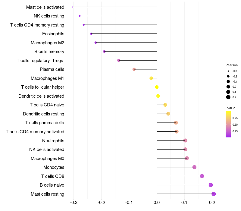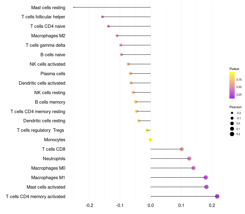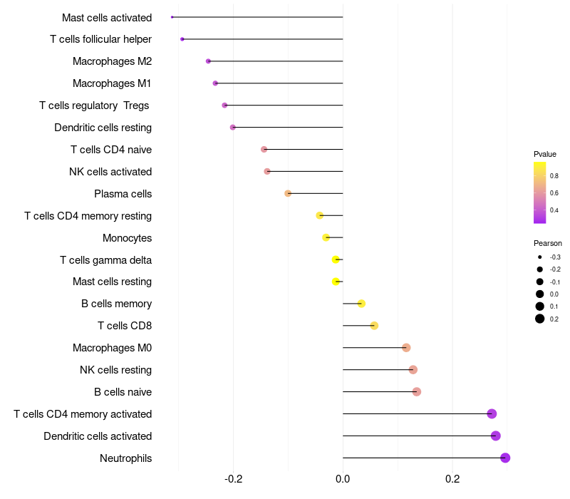 HeatMap of cell type fractions in all samples Lollipop of CHST2 expression and immune infiltrating cell level correlation result in HPV+ samples