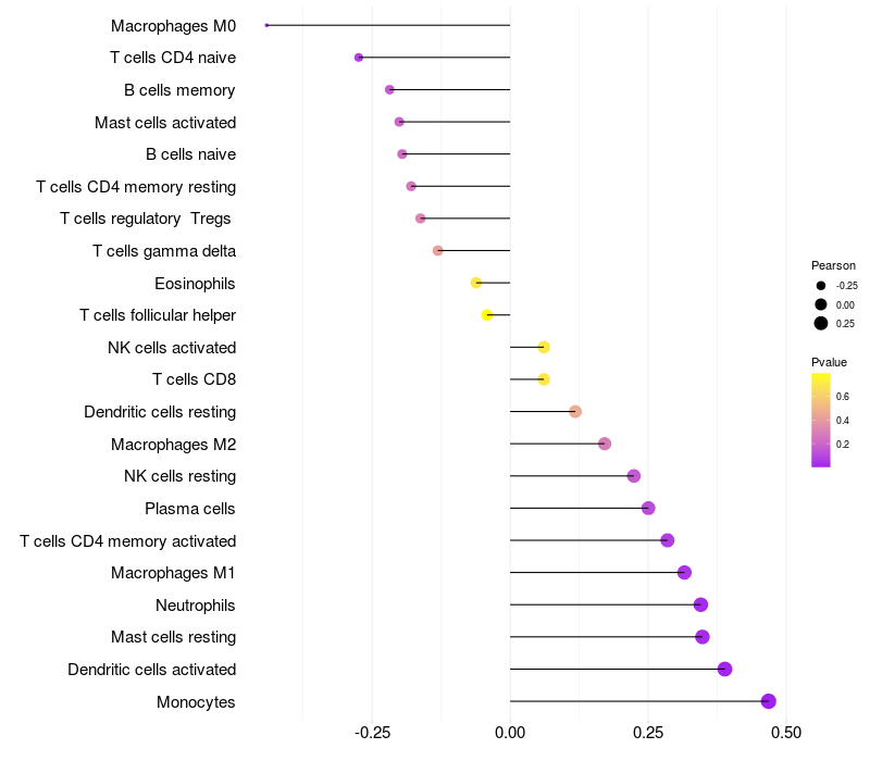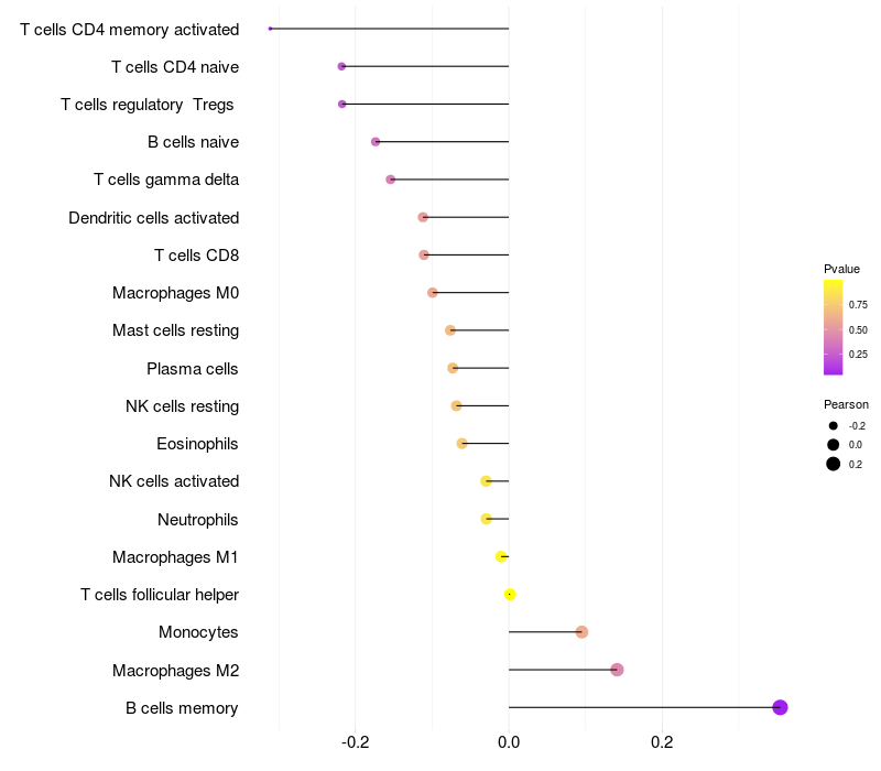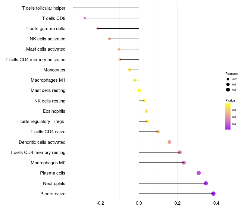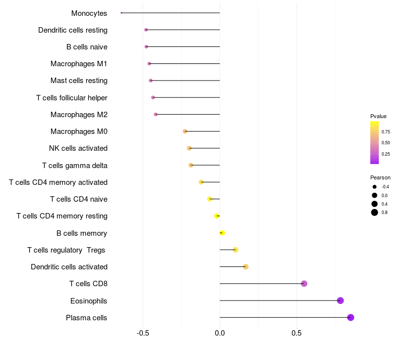Lollipop of CHSY3 expression and immune infiltrating cell level correlation result in EBV+ samples