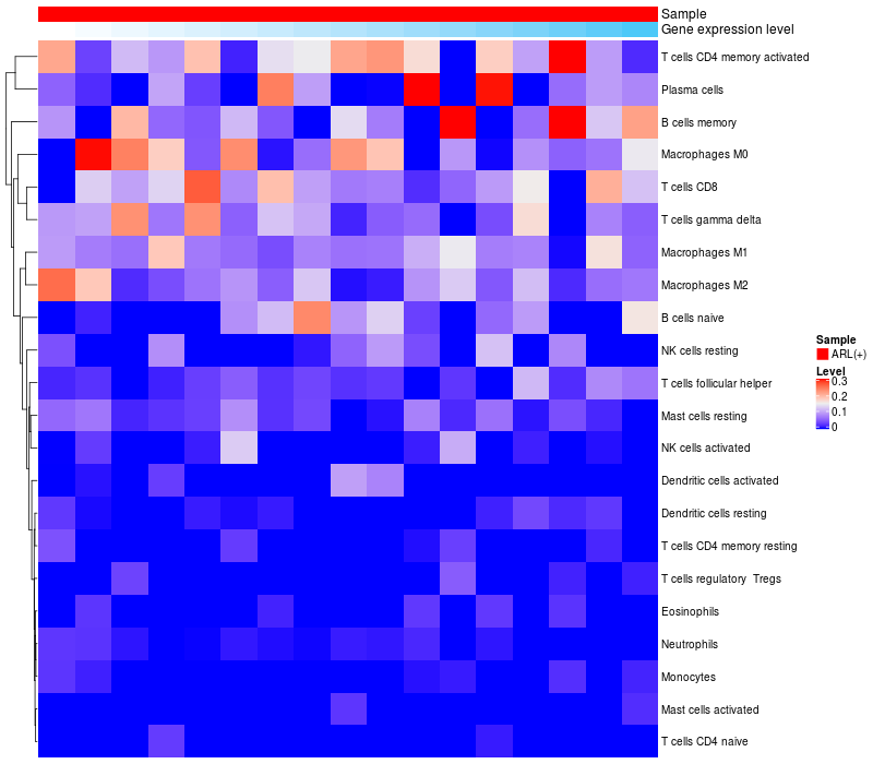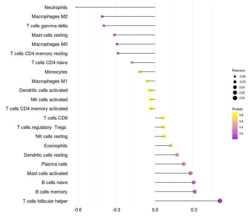 Relationship between gene expression and immune infiltrating cell level
