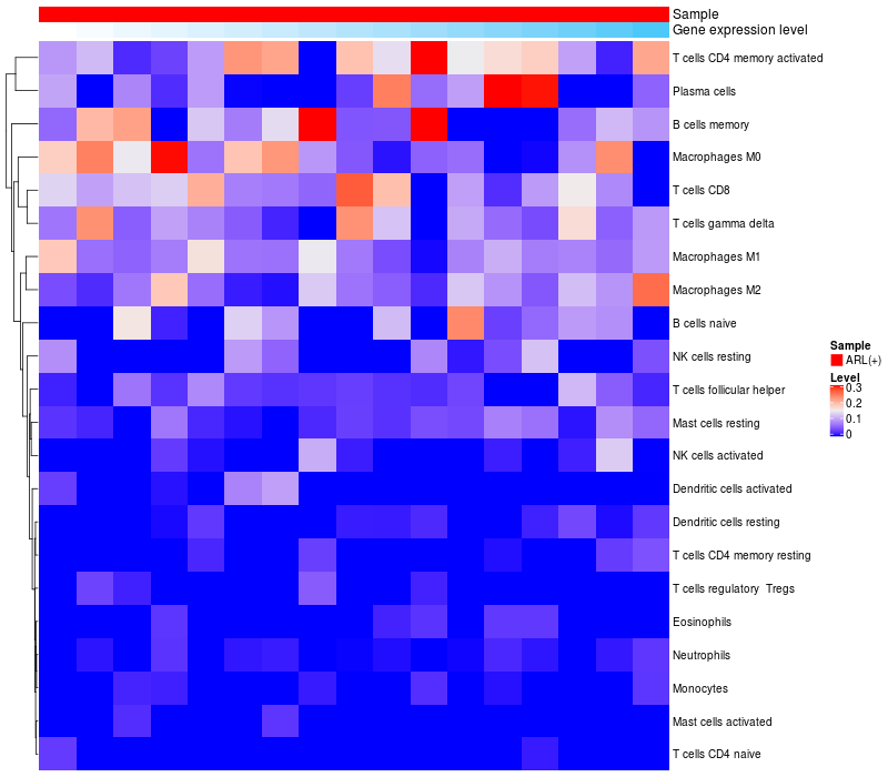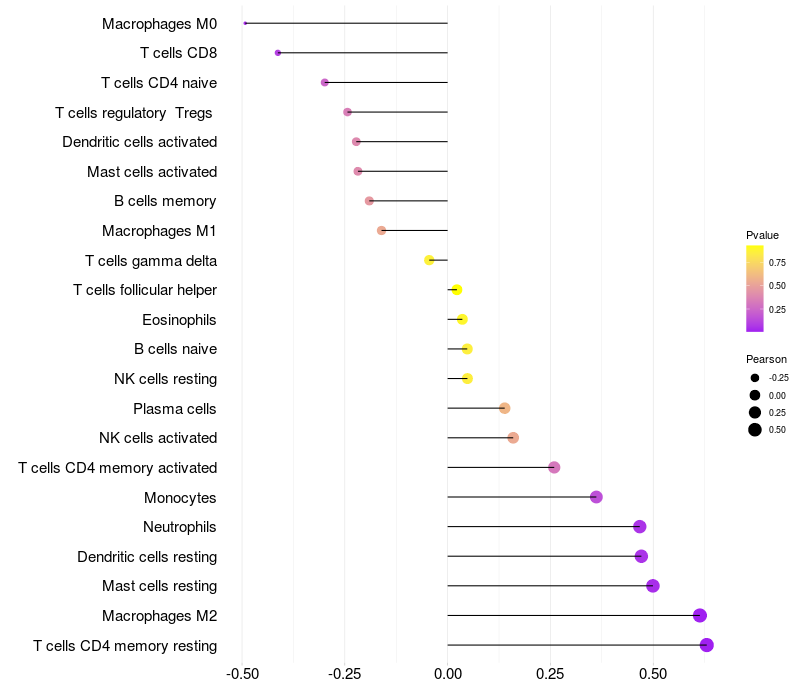Relationship between gene expression and immune infiltrating cell level