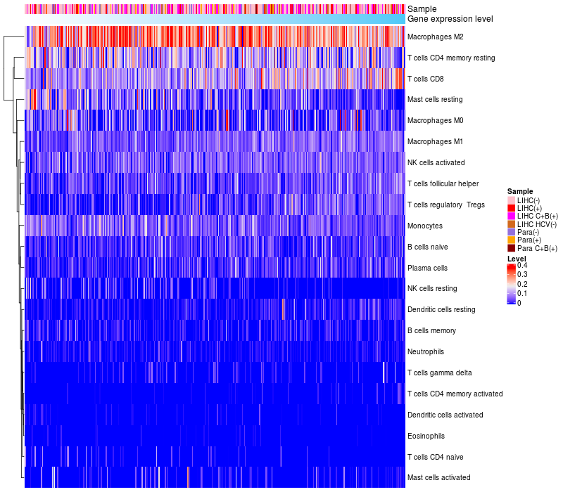 Liver hepatocellular carcinoma HCV (HBV+)(86), Liver hepatocellular carcinoma HCV (HBV-)(19), Liver hepatocellular carcinoma (HBV+)(209), Liver hepatocellular carcinoma (HBV+)(60), Paracancerous HCV (HBV+)(4), Paracancerous (HBV-)(28), Paracancerous (HBV+)(18) |