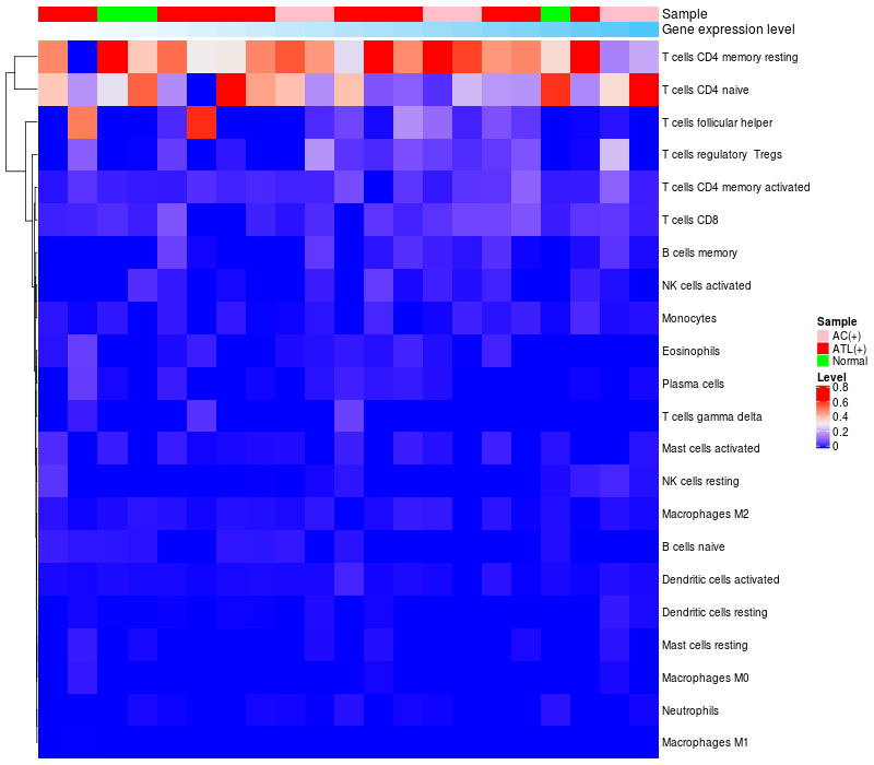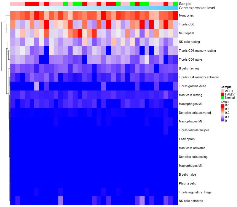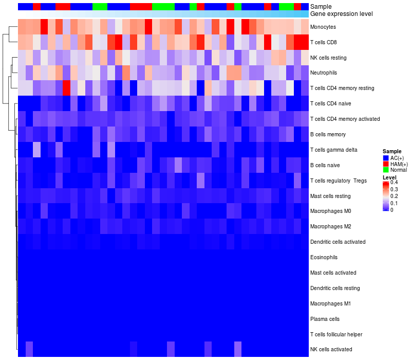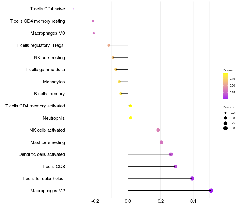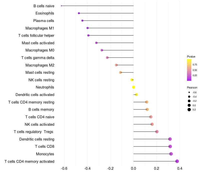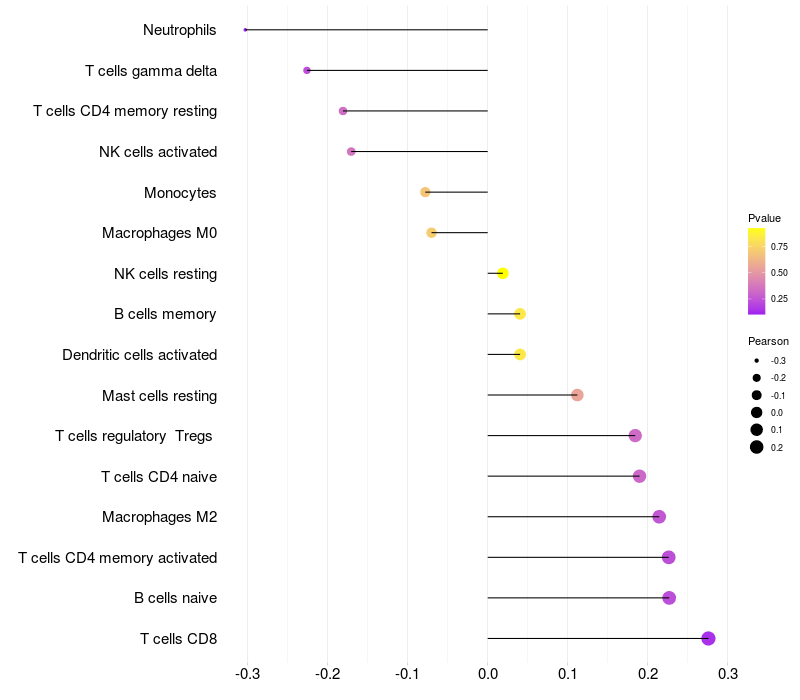 Lollipop of CITED1 expression and immune infiltrating cell level correlation result in HTLV1+ samples