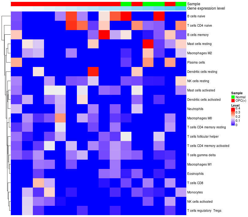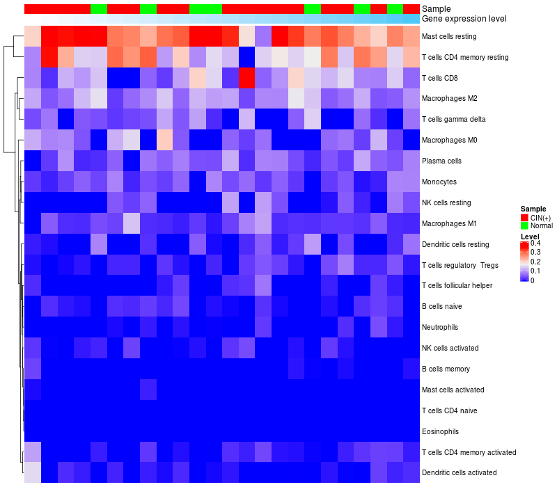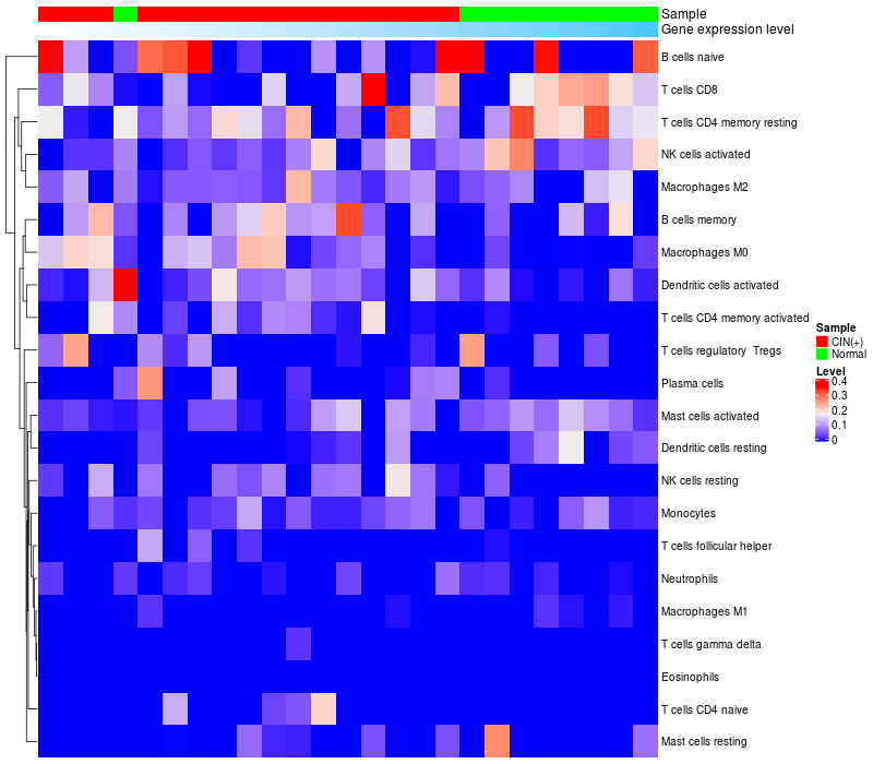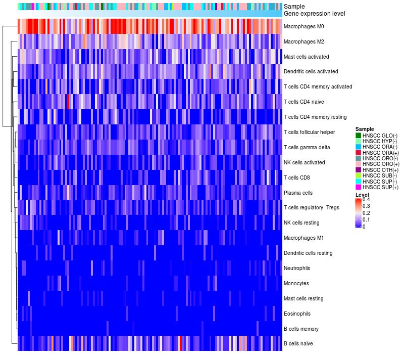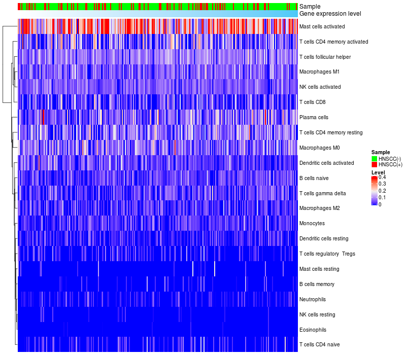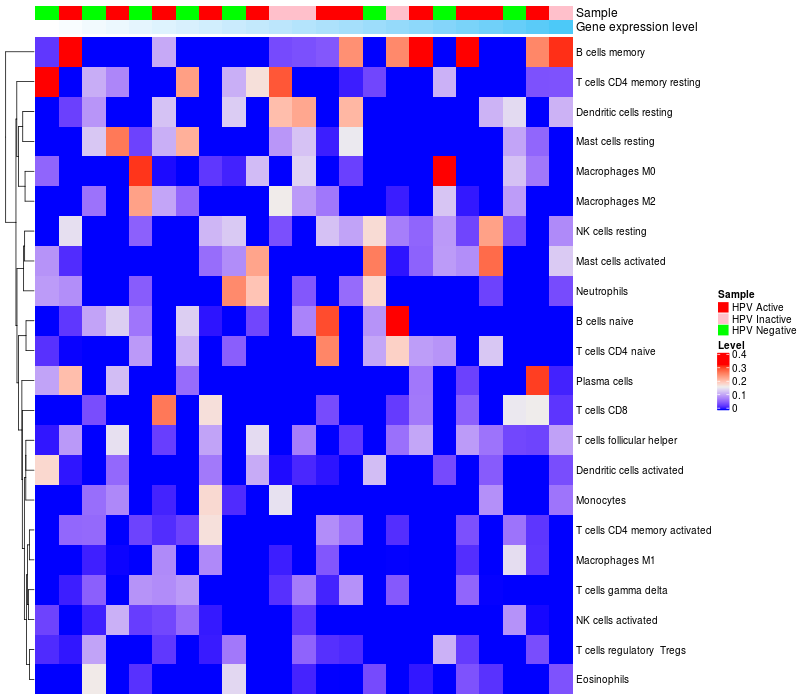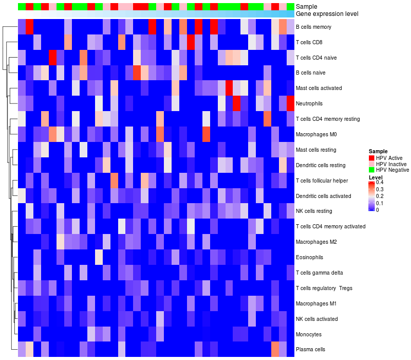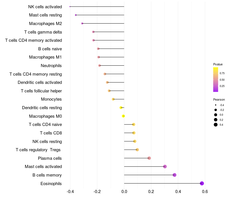 Lollipop of CITED2 expression and immune infiltrating cell level correlation result in HPV+ samples