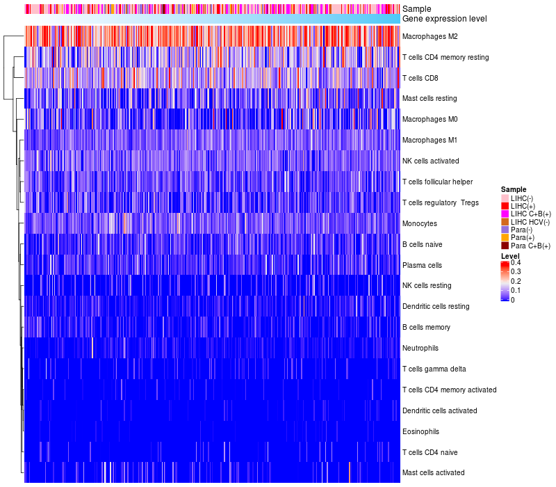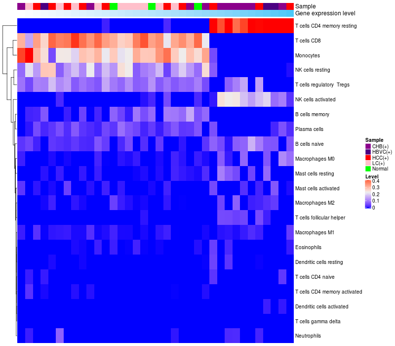 Relationship between gene expression and immune infiltrating cell level