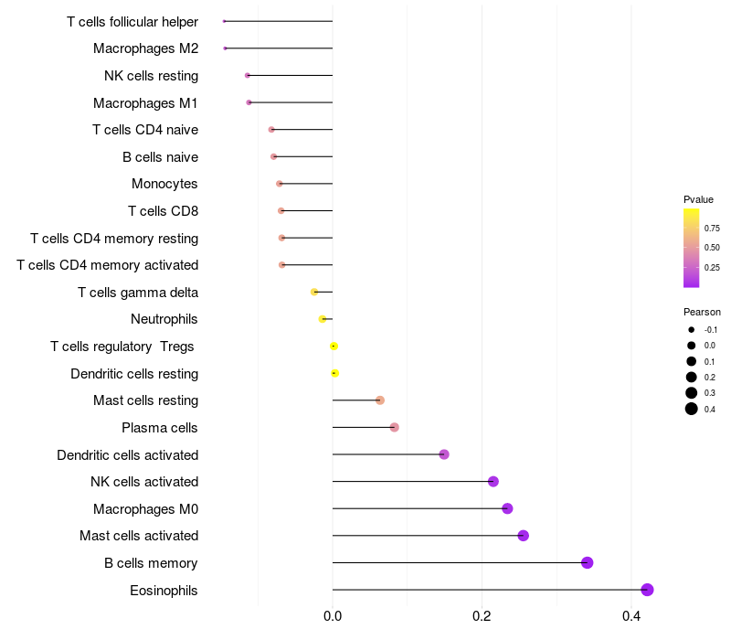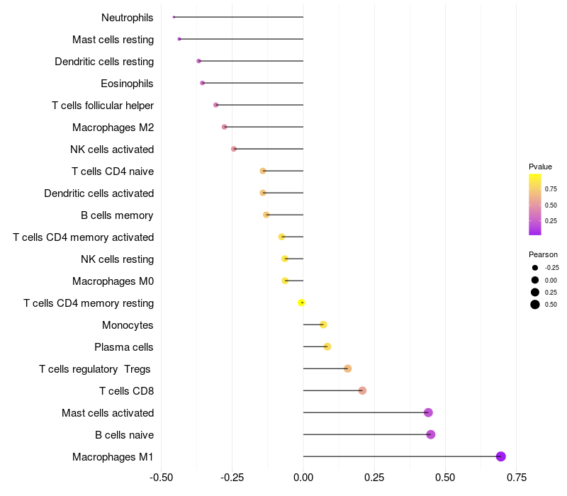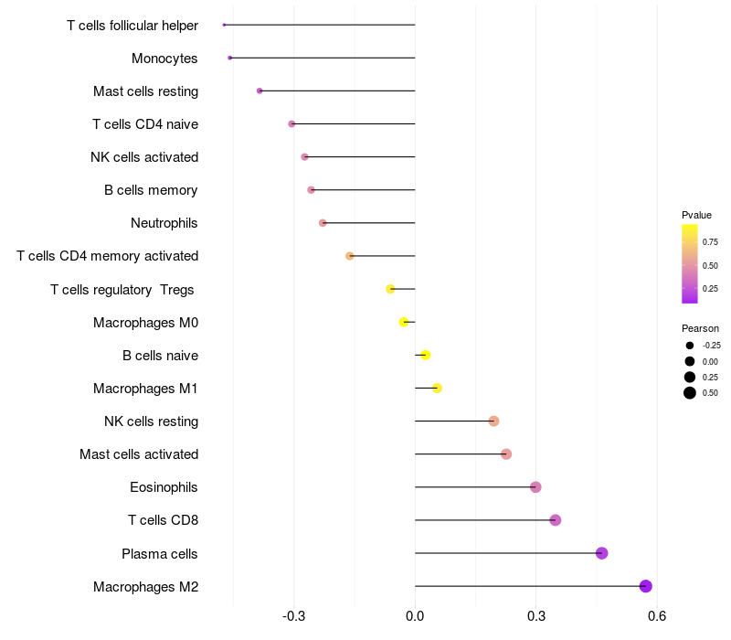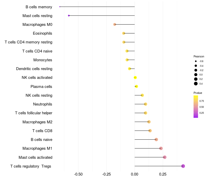 Lollipop of CLDN10 expression and immune infiltrating cell level correlation result in HBV+ Liver cirrhosis samples