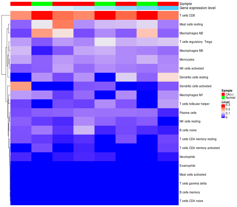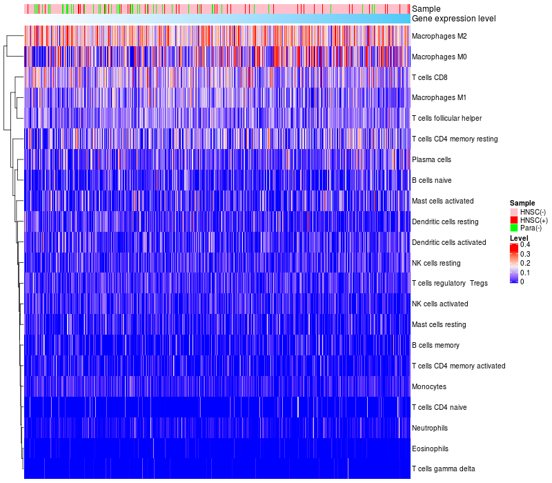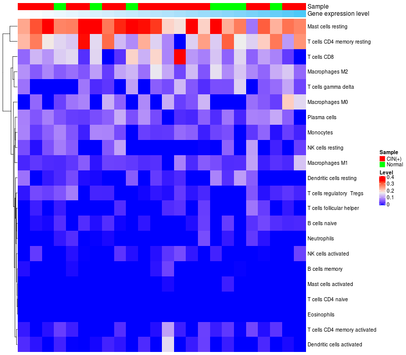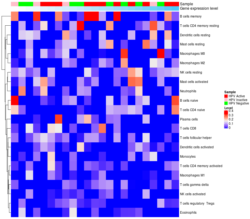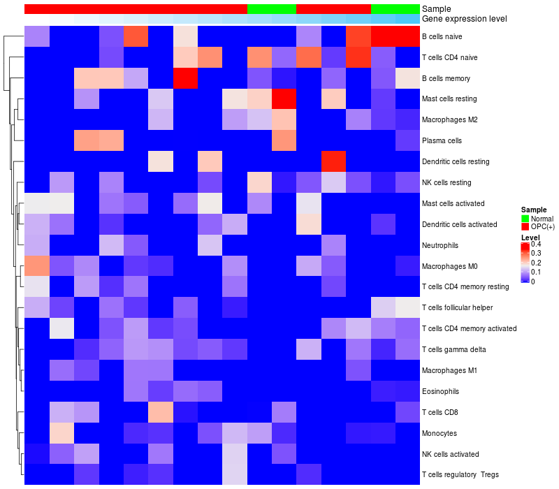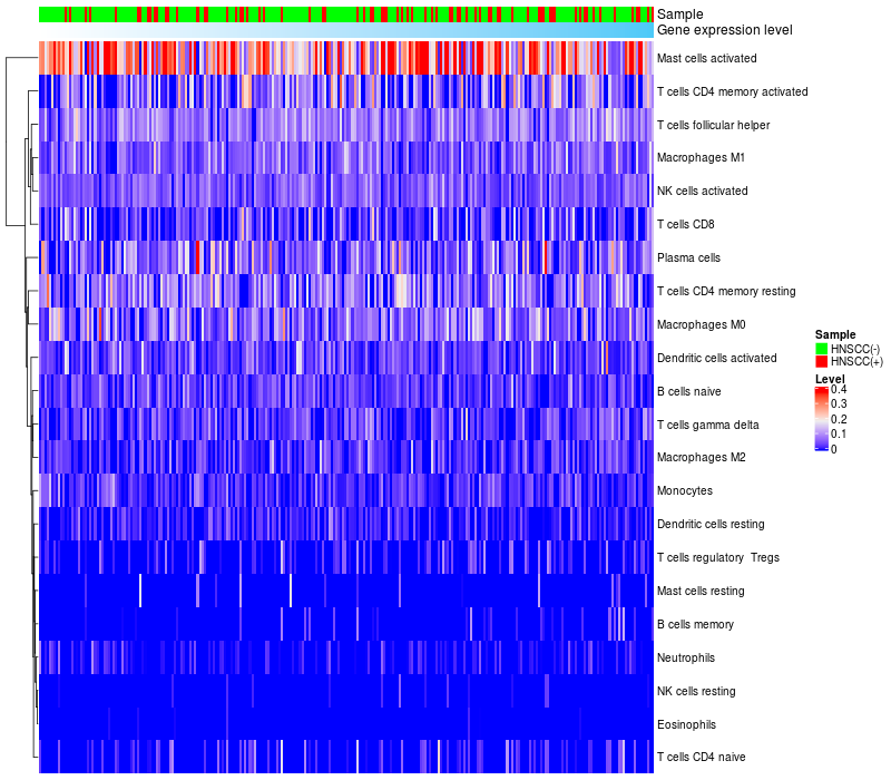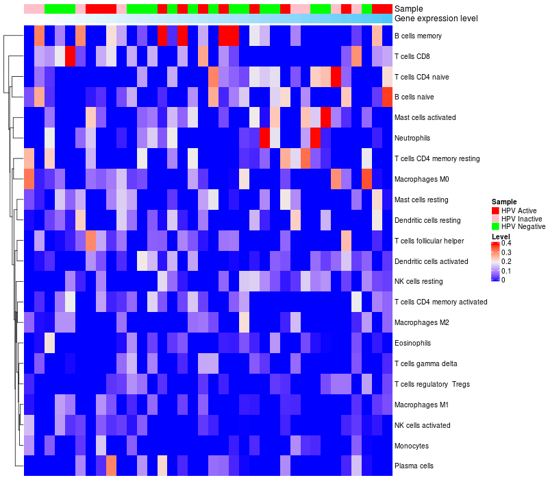 Lollipop of CLDN18 expression and immune infiltrating cell level correlation result in HPV+ samples