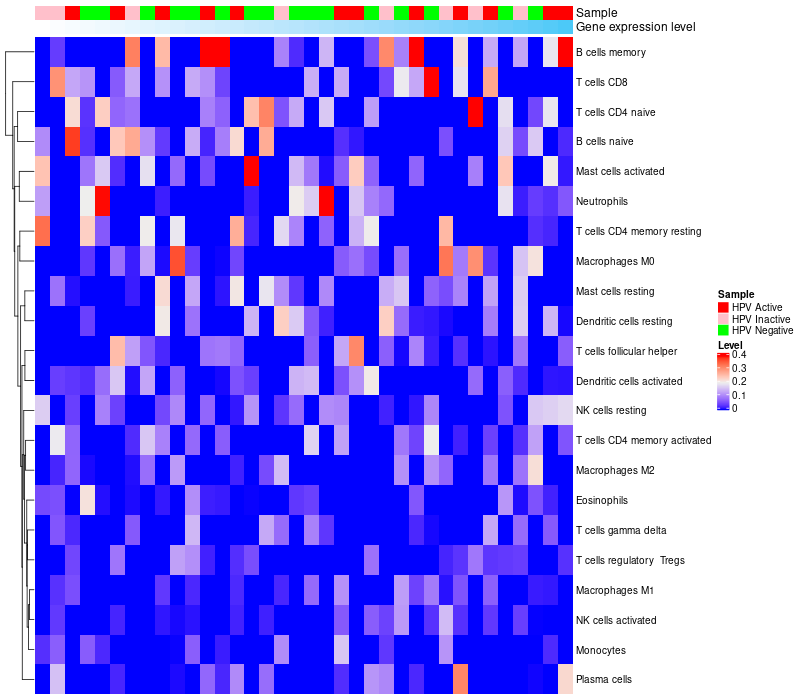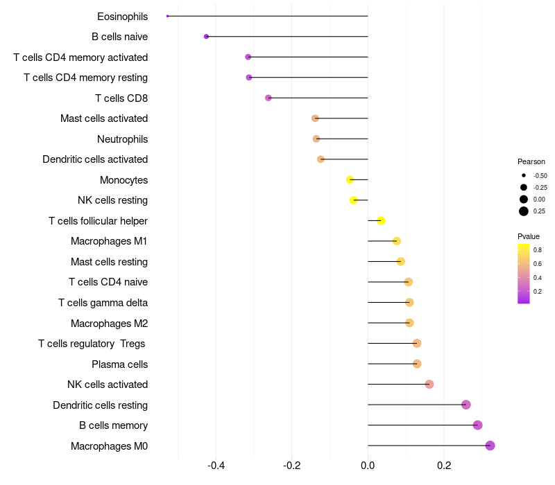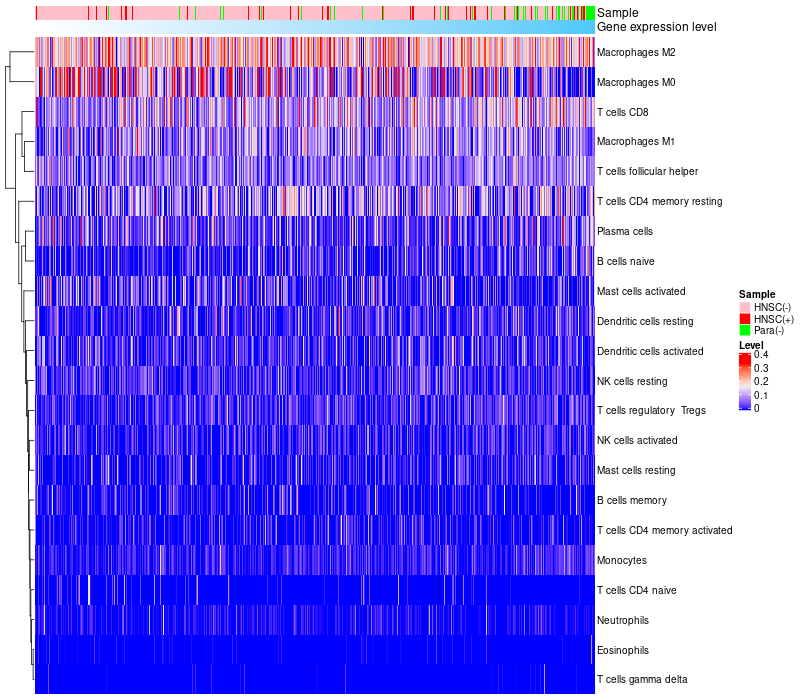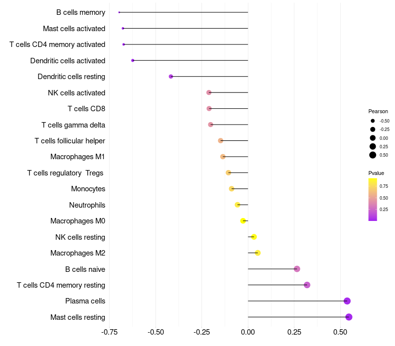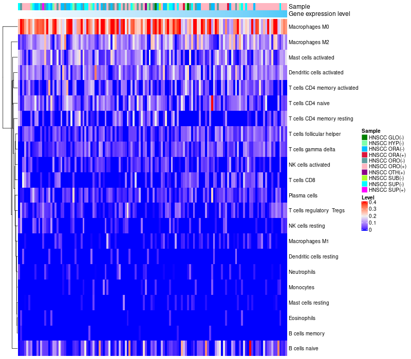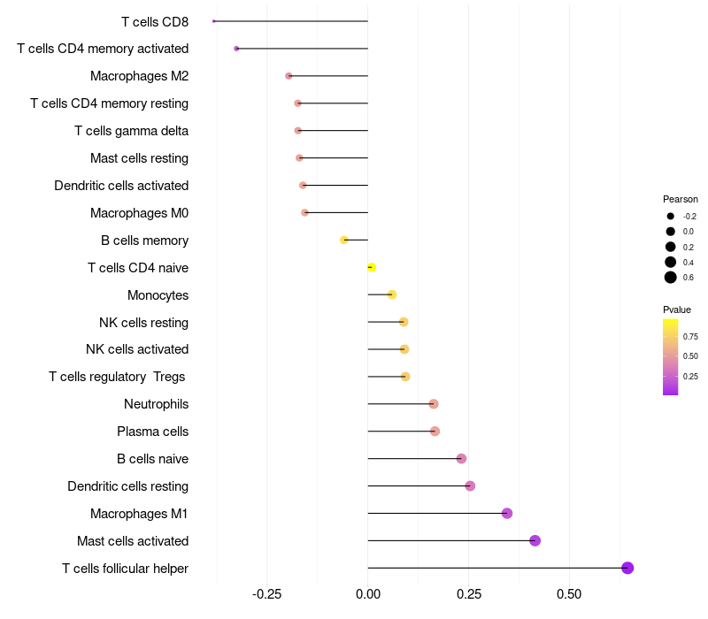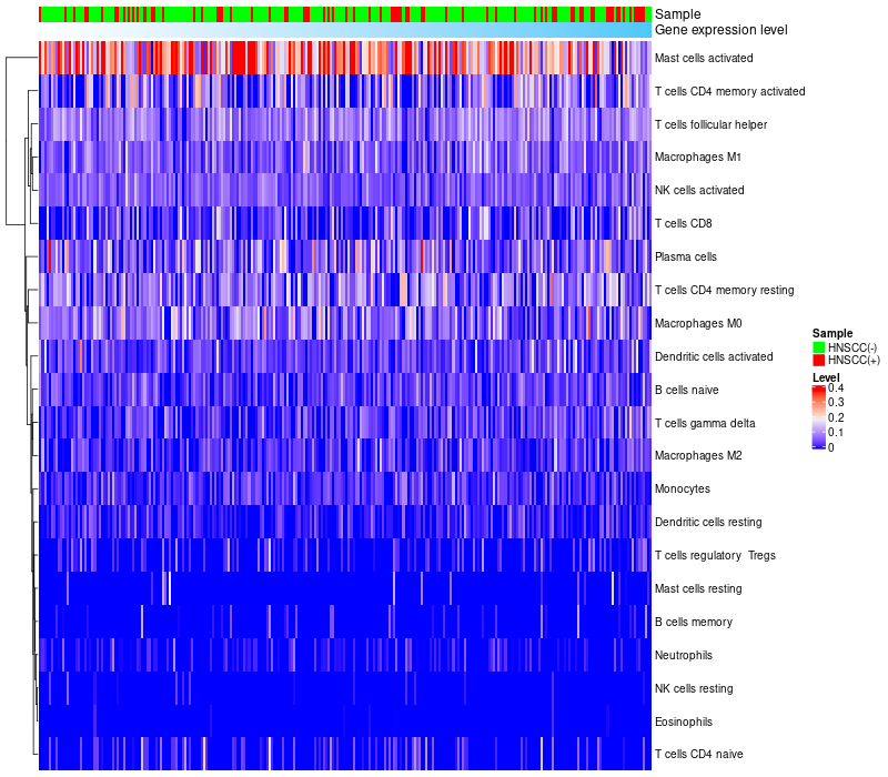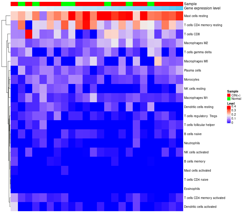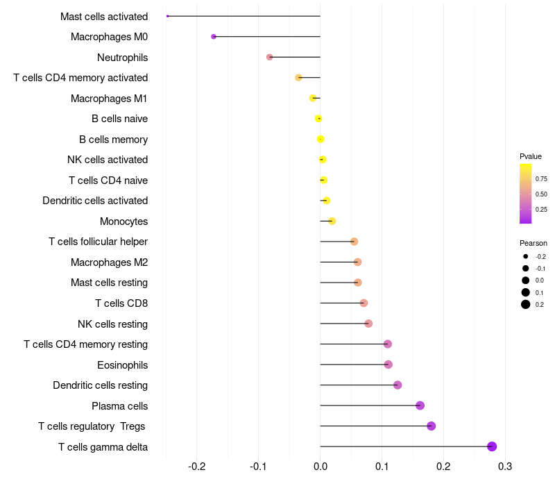 Relationship between gene expression and immune infiltrating cell level