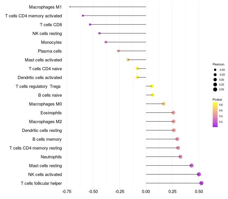 Lollipop of CLIC1 expression and immune infiltrating cell level correlation result in HBV+ samples