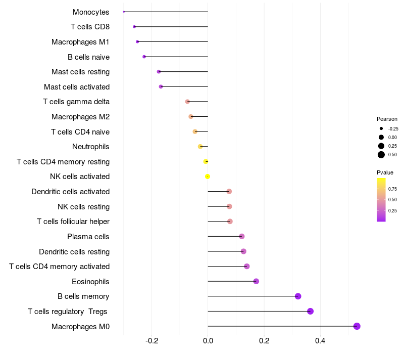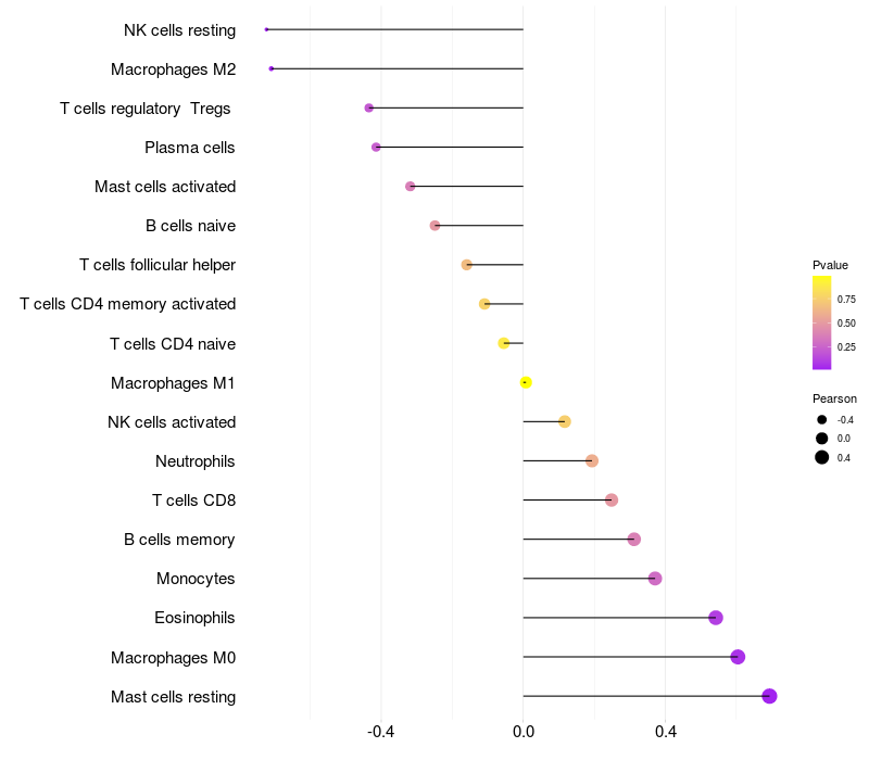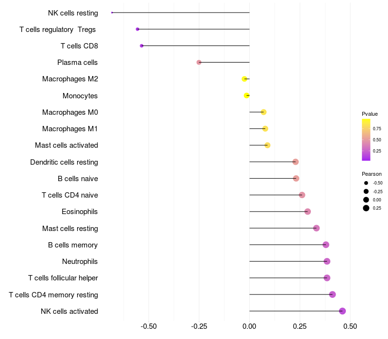 Lollipop of CLIC1 expression and immune infiltrating cell level correlation result in HBV+ Liver cirrhosis samples