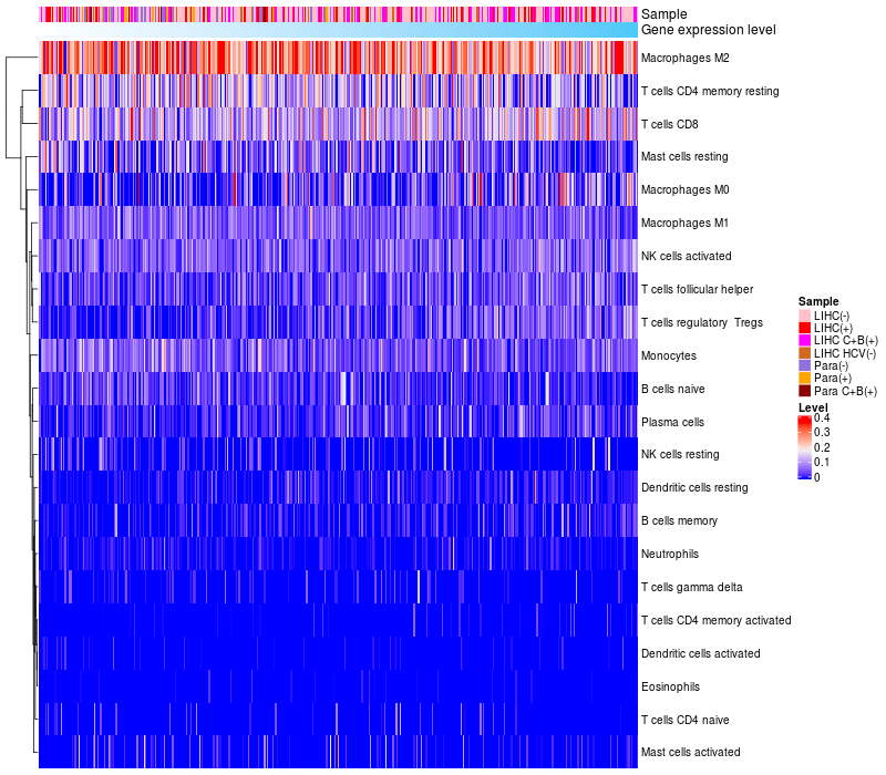 Liver hepatocellular carcinoma HCV (HBV+)(86), Liver hepatocellular carcinoma HCV (HBV-)(19), Liver hepatocellular carcinoma (HBV+)(209), Liver hepatocellular carcinoma (HBV+)(60), Paracancerous HCV (HBV+)(4), Paracancerous (HBV-)(28), Paracancerous (HBV+)(18) |