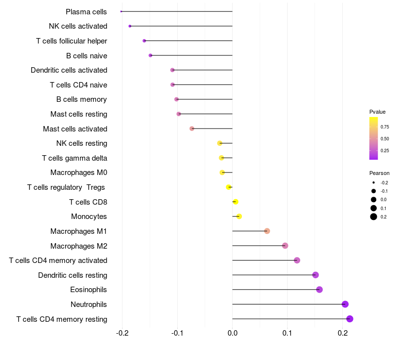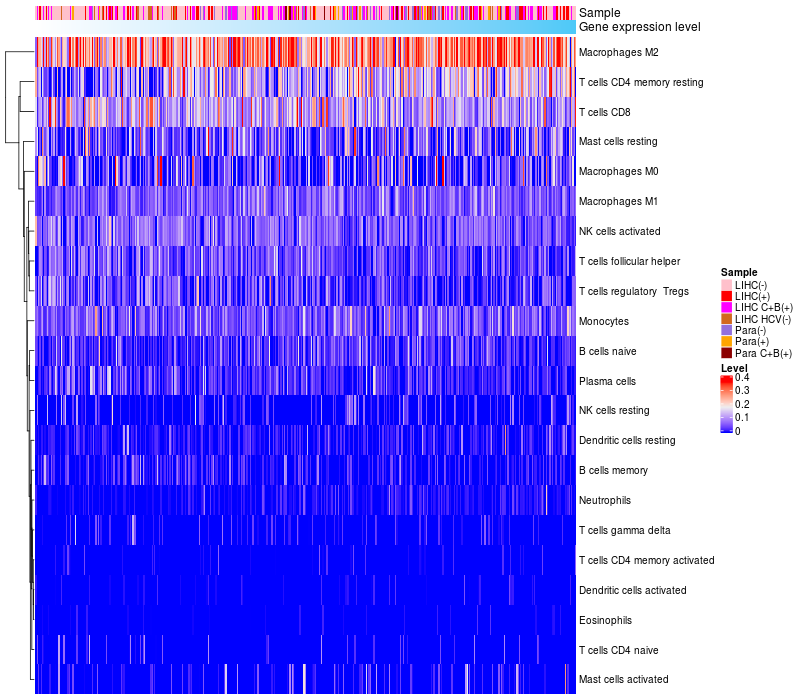 Relationship between gene expression and immune infiltrating cell level